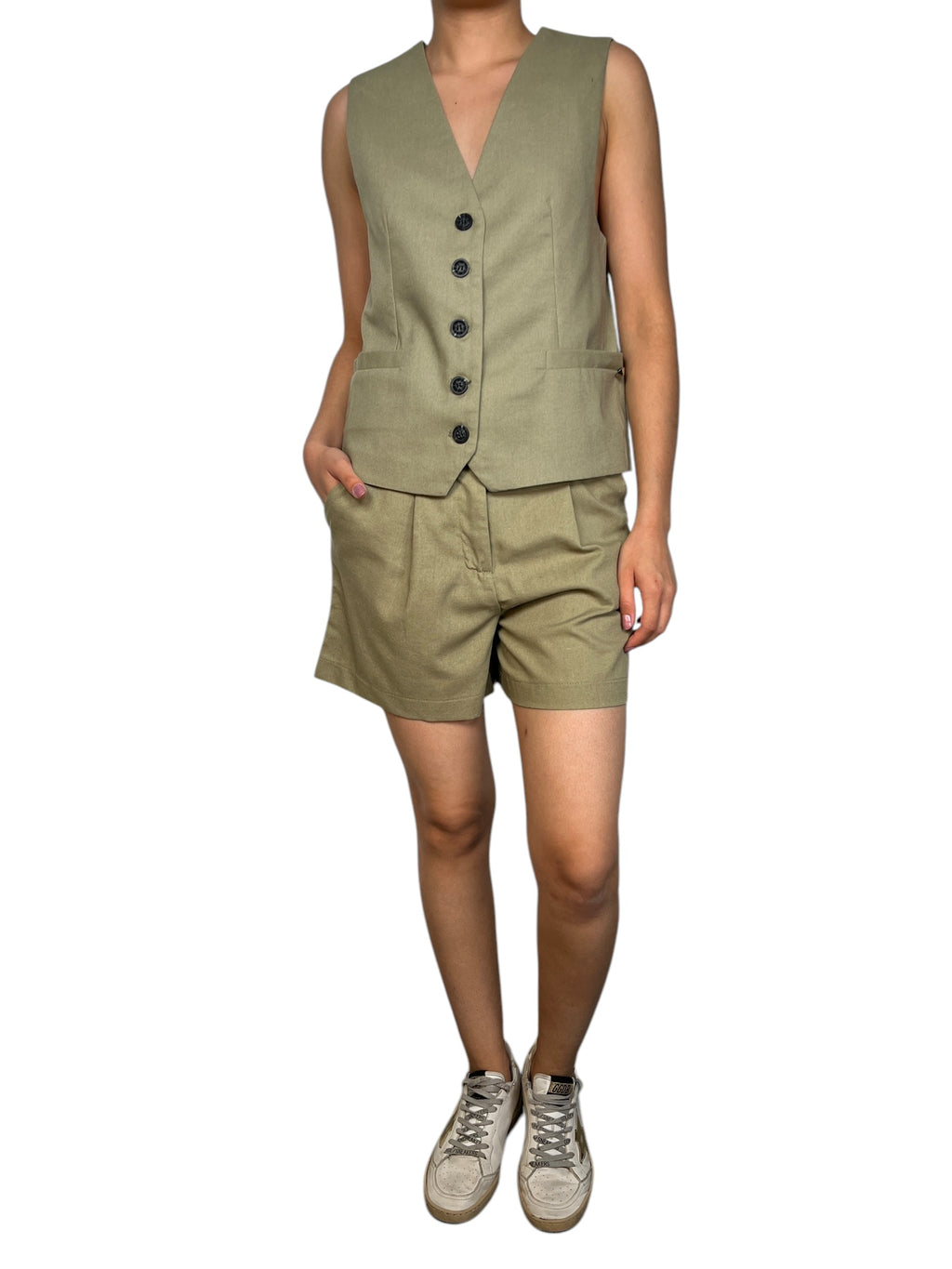 Altura modelo 1,60 cm. Falda talla S. Gilet talla XS.