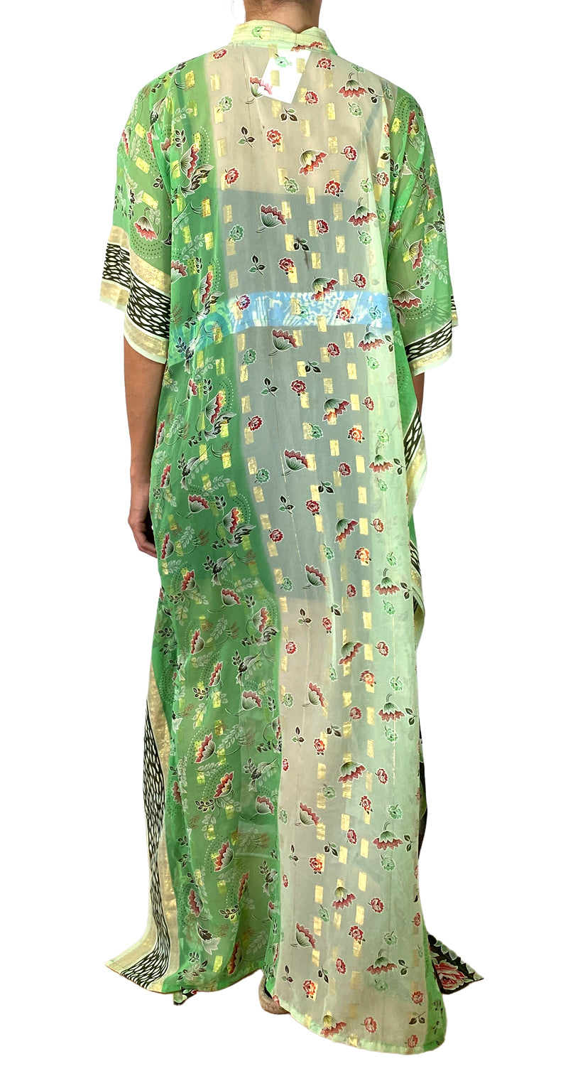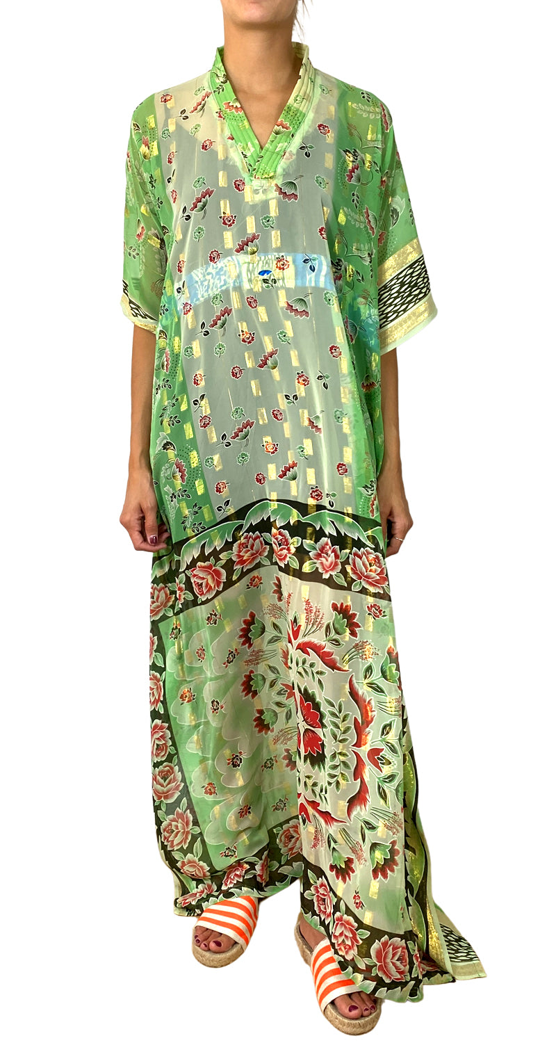 Salida de baño de cuello en V con motivos florales.No tiene el cintón para apretar.