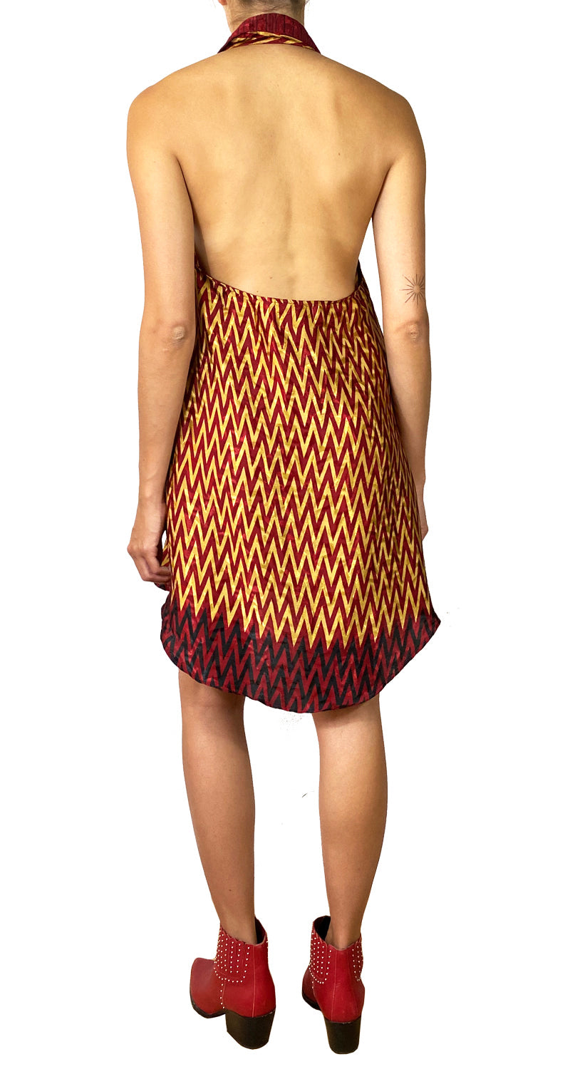 Vestido Rojo de espalda baja descubierta con diseño zig zag. Botones en delantero.
