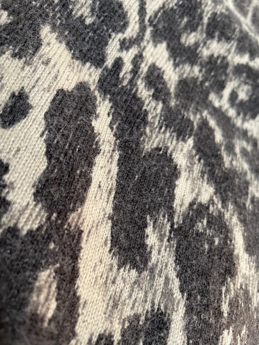 Sweater cerrado con estampado Animal Print y cuello redondo, abertura en laterales.