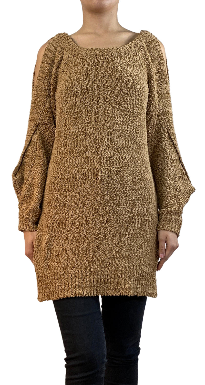 Sweater Cafe tejido con lazo en espalda y cut out en hombros. Talla 1 de la marca.