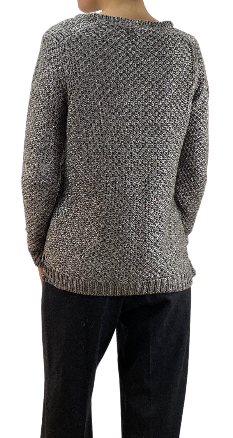 Sweater color Gris tejido, diseño cerrado de cuello redondo.