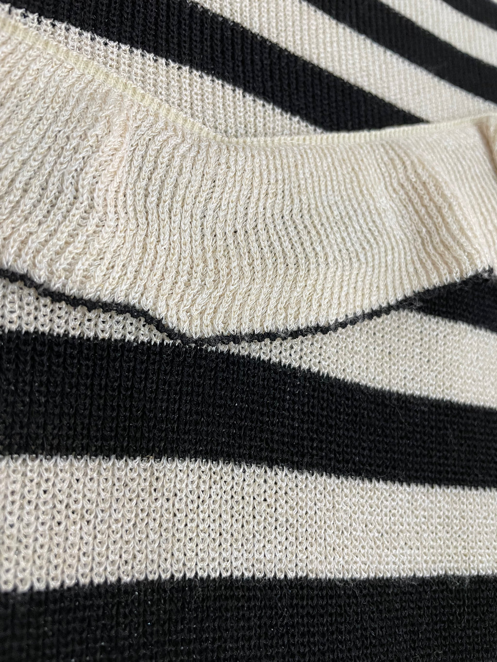 Sweater Cerrado, con vuelos y diseño a rayas en Beige y Negro.