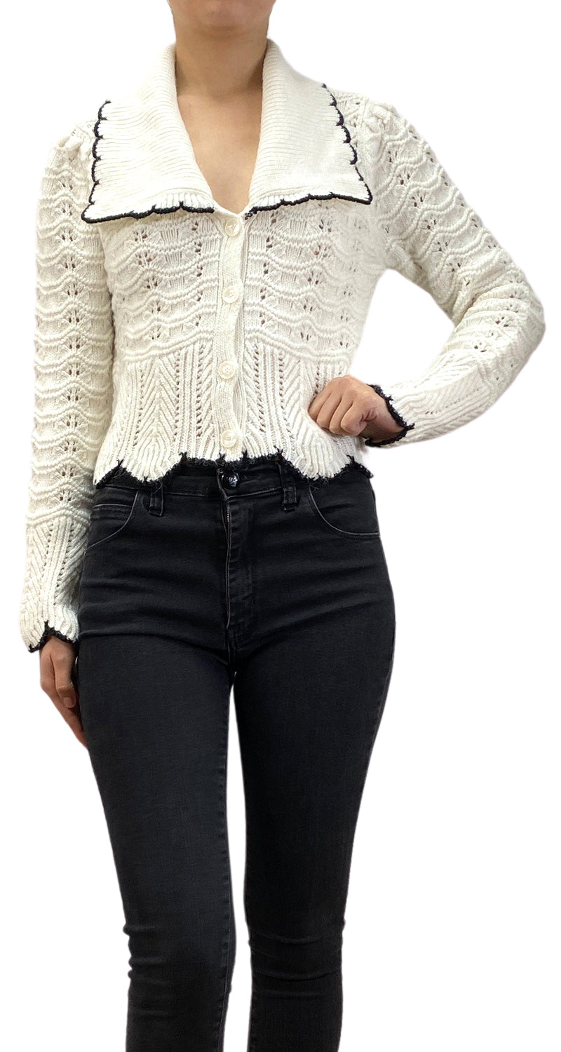 Sweater color Blanco tejido de punto calado con cuello bobo.
