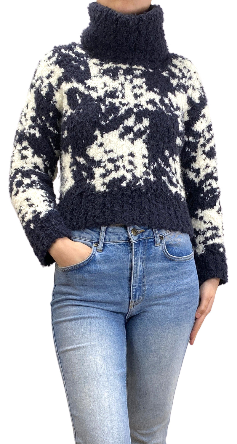 Sweater cuello tortuga color Azul Marino y Blanco. Marca Mauro Grifoni.