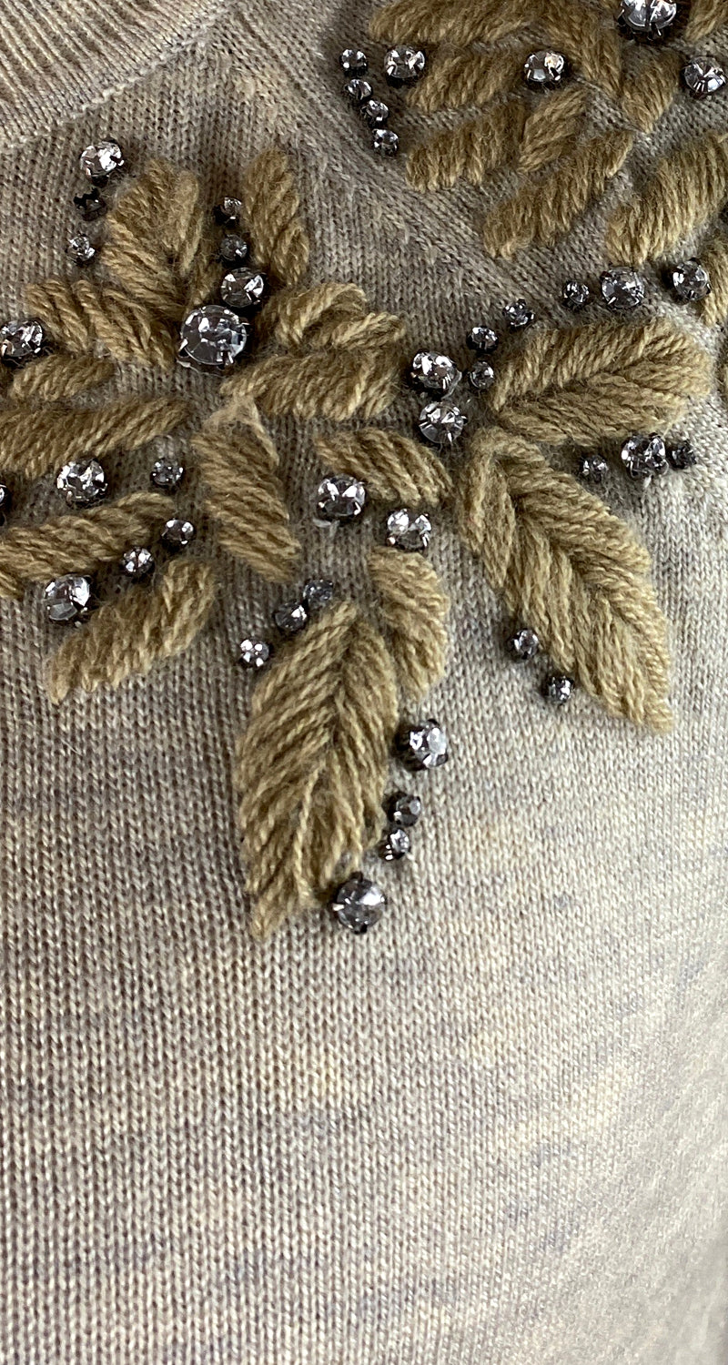 Sweater color Beige, con diseño bordado y apliques brillantes en delantero.