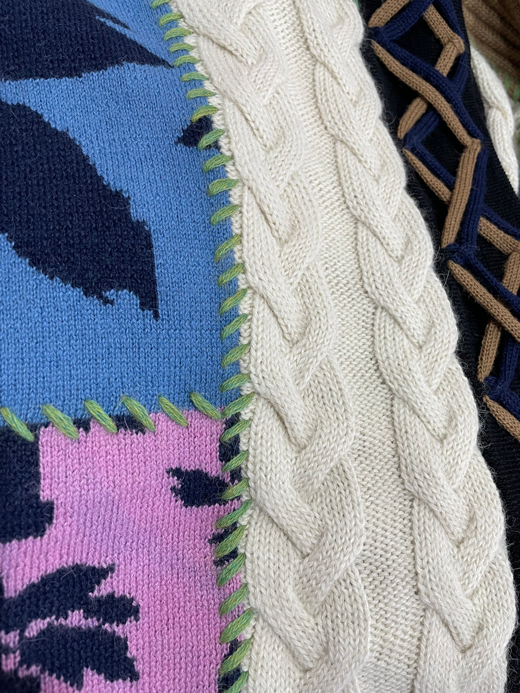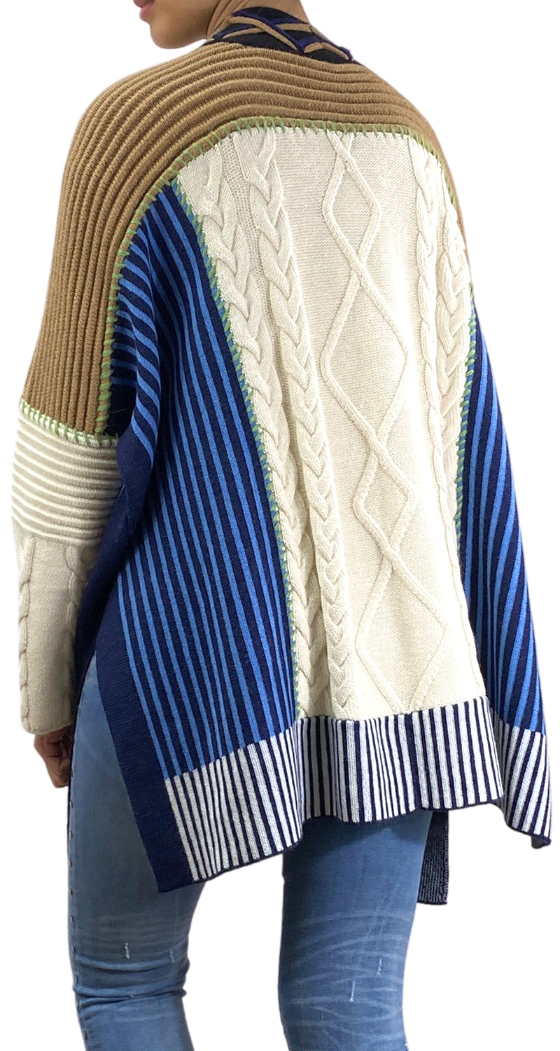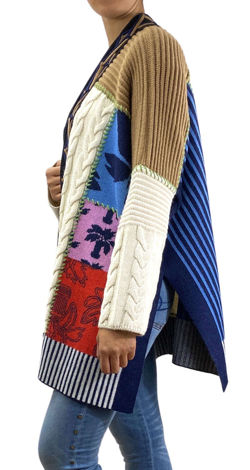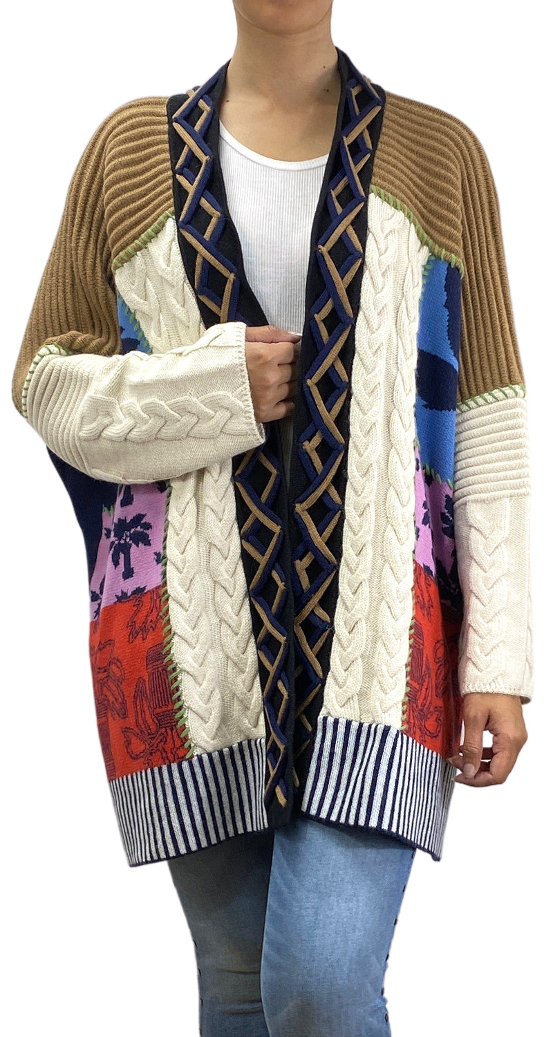 Sweater abierto tejido con estampado Multicolor, abertura en laterales. Talla 1 de la marca.