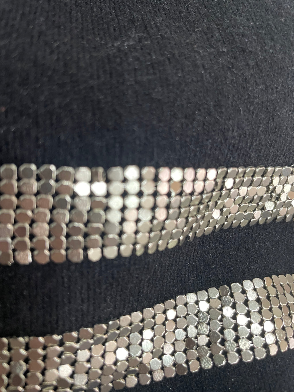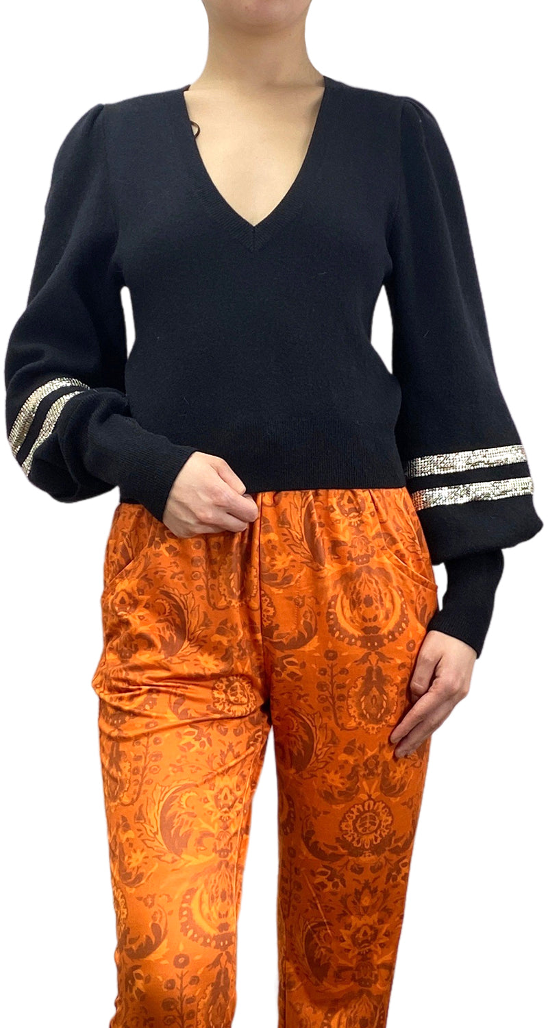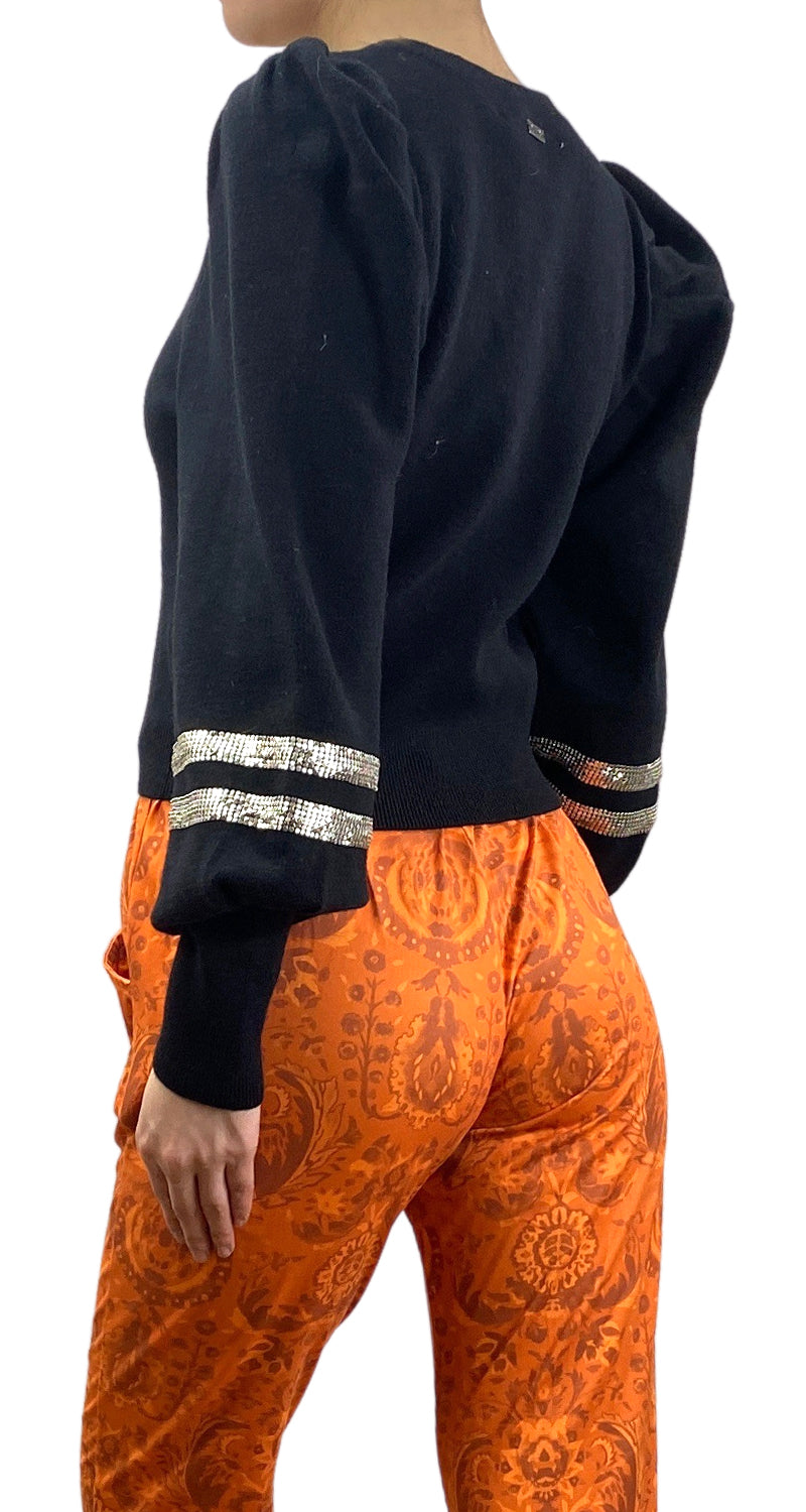 Sweater color Negro de cuello V, mangas aglobadas con aplicaciones Plateadas. Talla 2 de la marca.