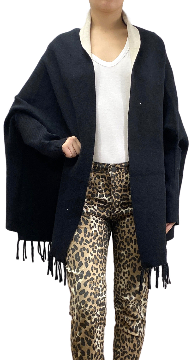 Sweater color Negro abierto detalle de flecos. Sin prendedor.