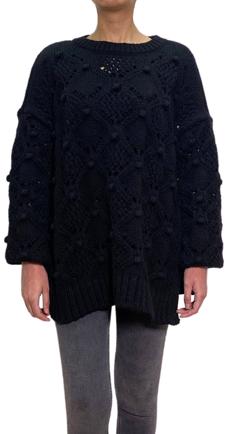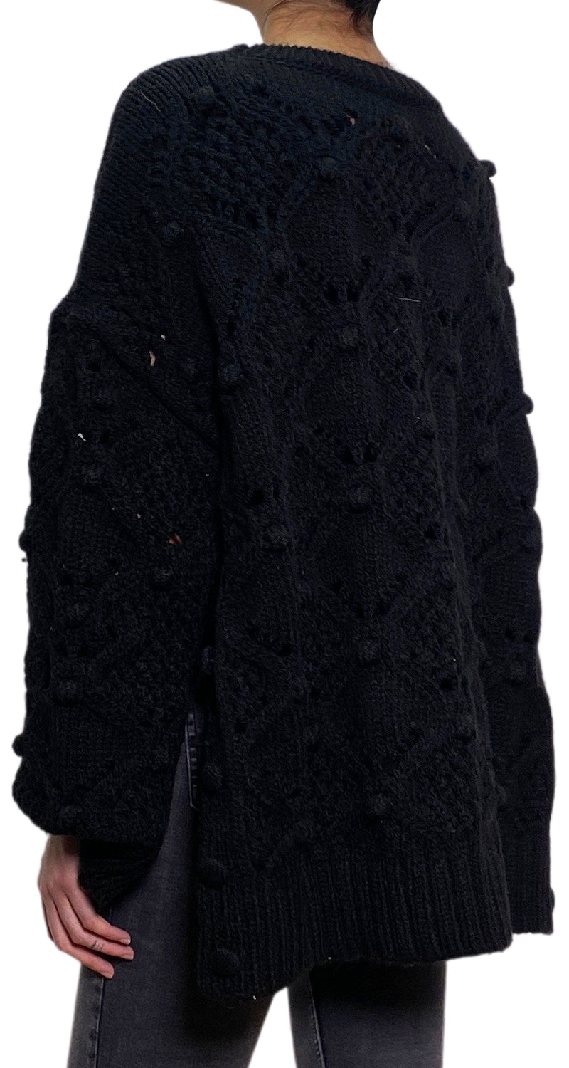 Sweater color Negro con diseño tejido y detalles con aberturas laterales.