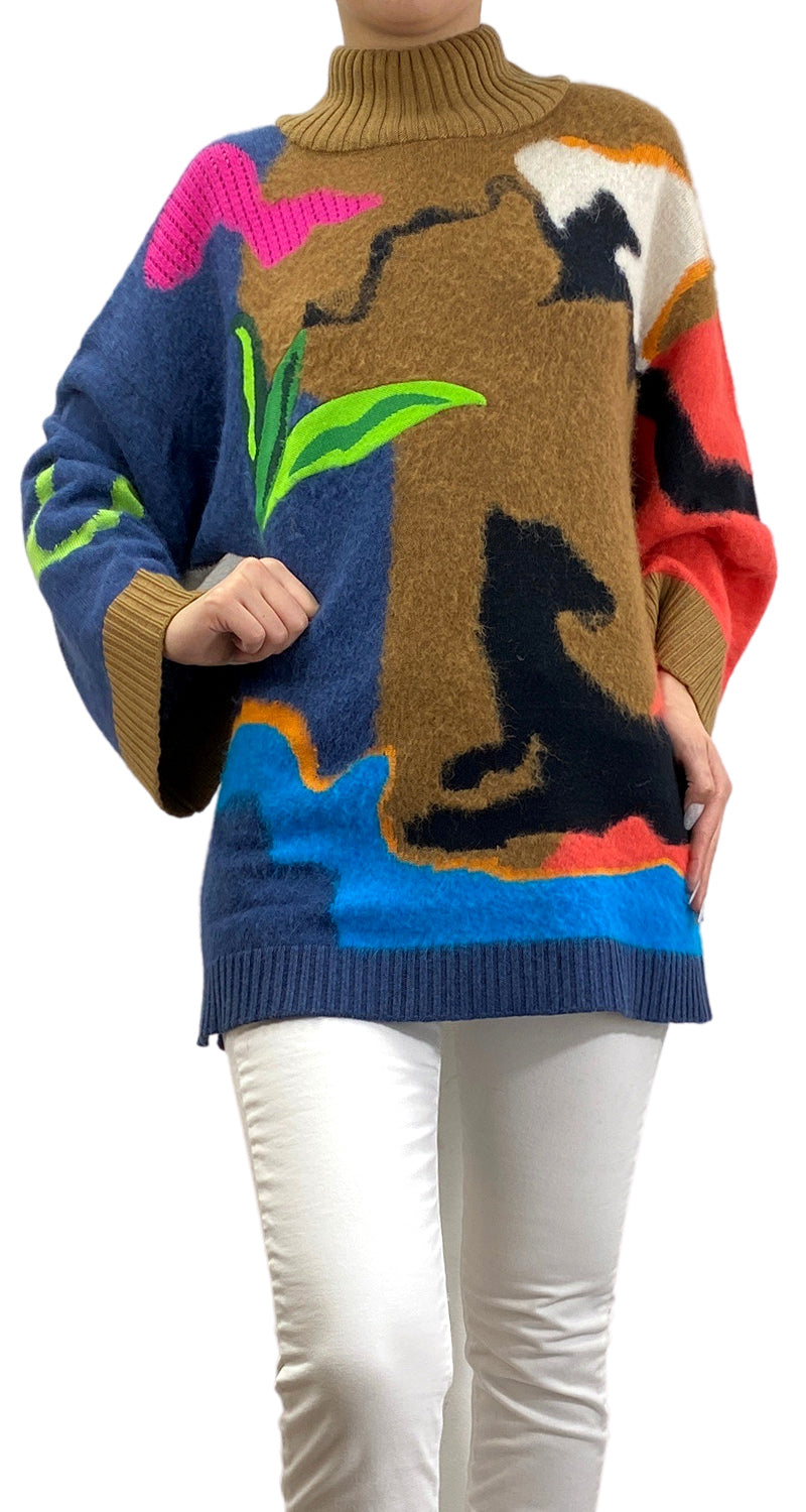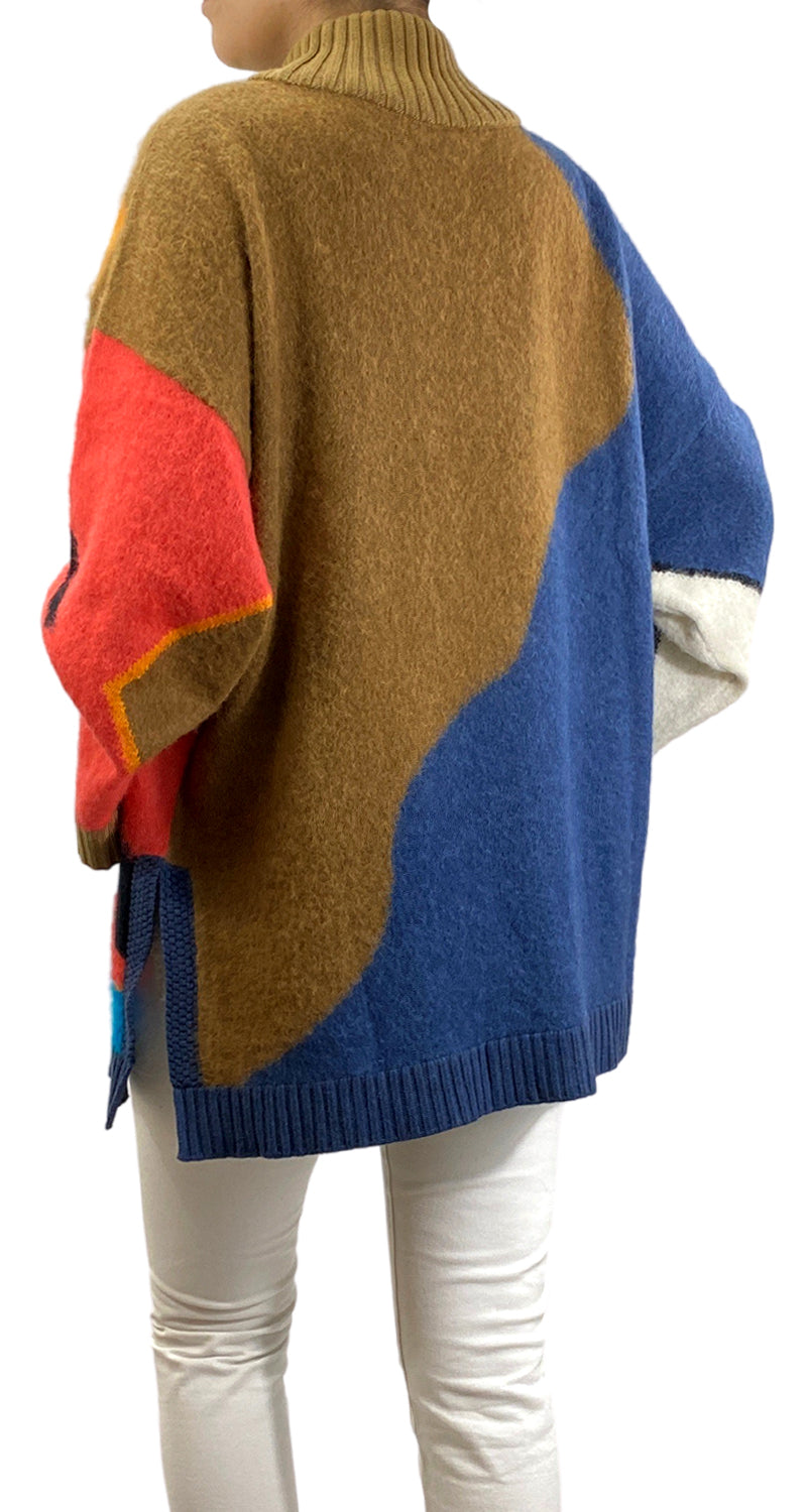 Sweater Multicolor cerrado de cuello redondo y con aberturas laterales. Talla 1 de la marca.