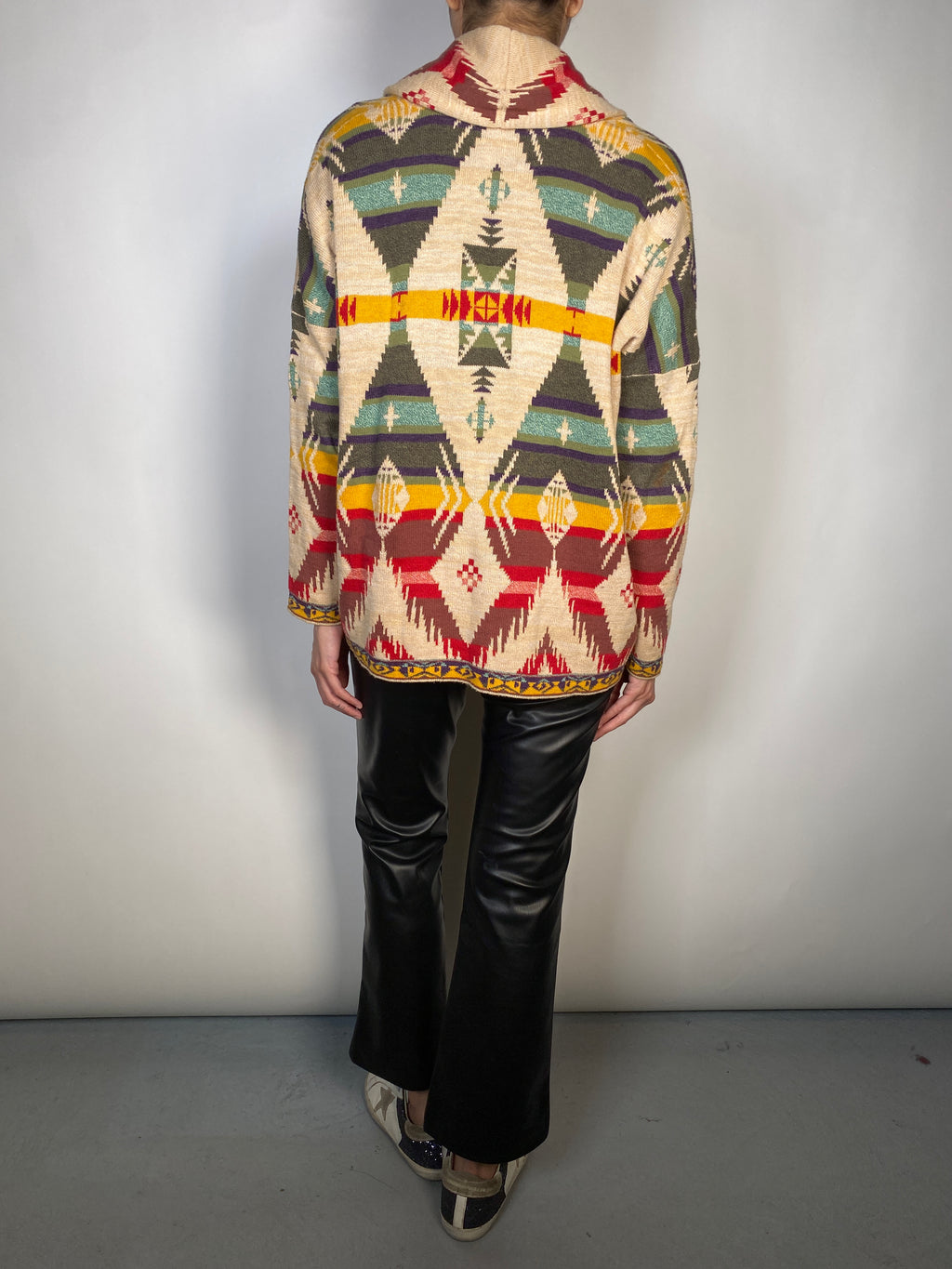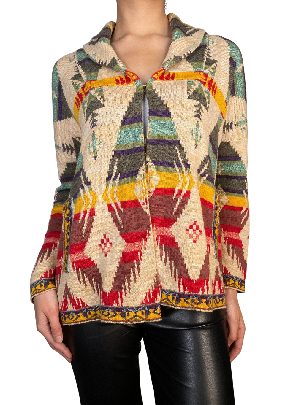 Sweater tejido con estampado Multicolor y bolsillos laterales.