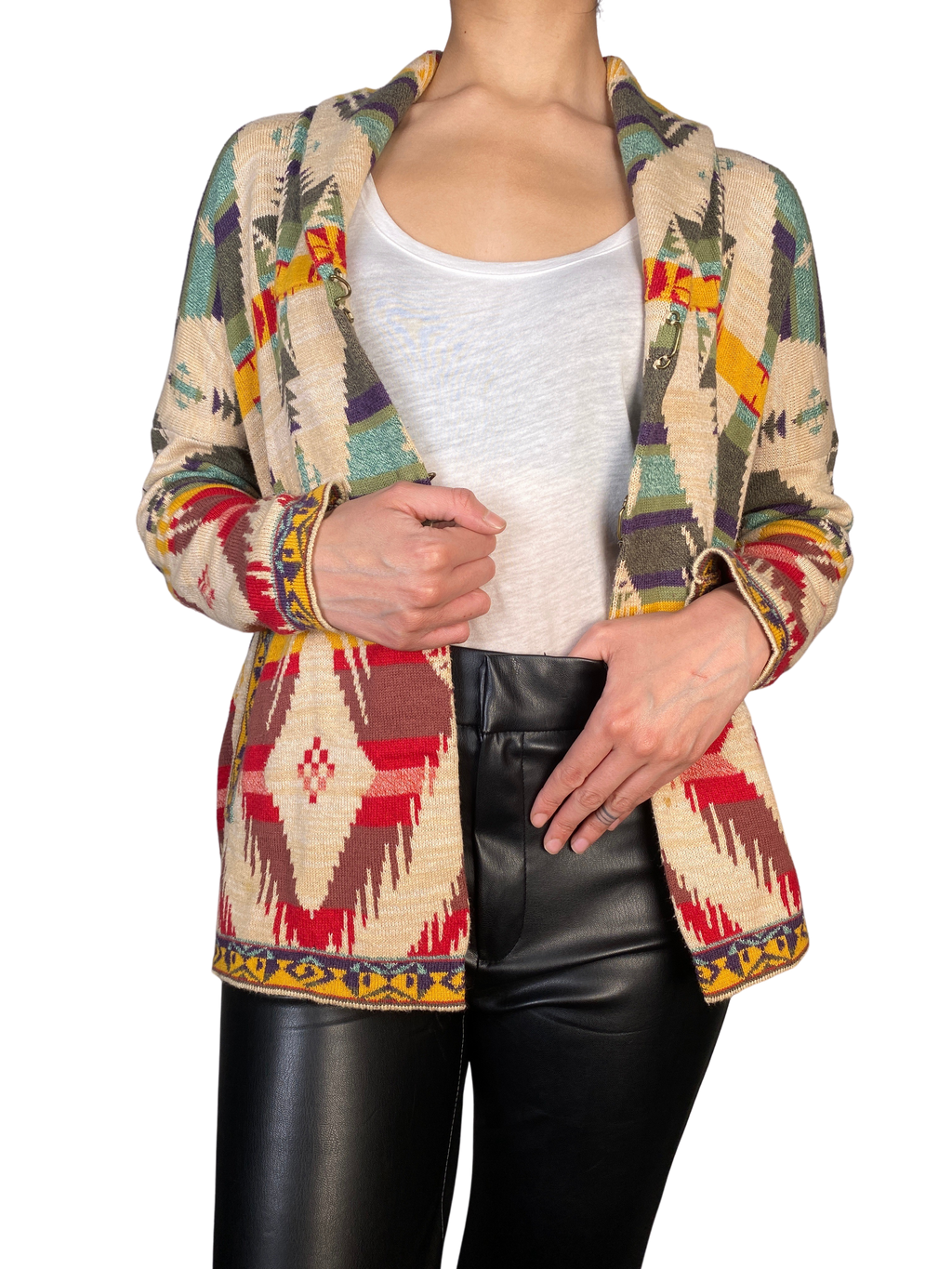 Sweater tejido con diseño étnico Multicolor y bolsillos laterales.