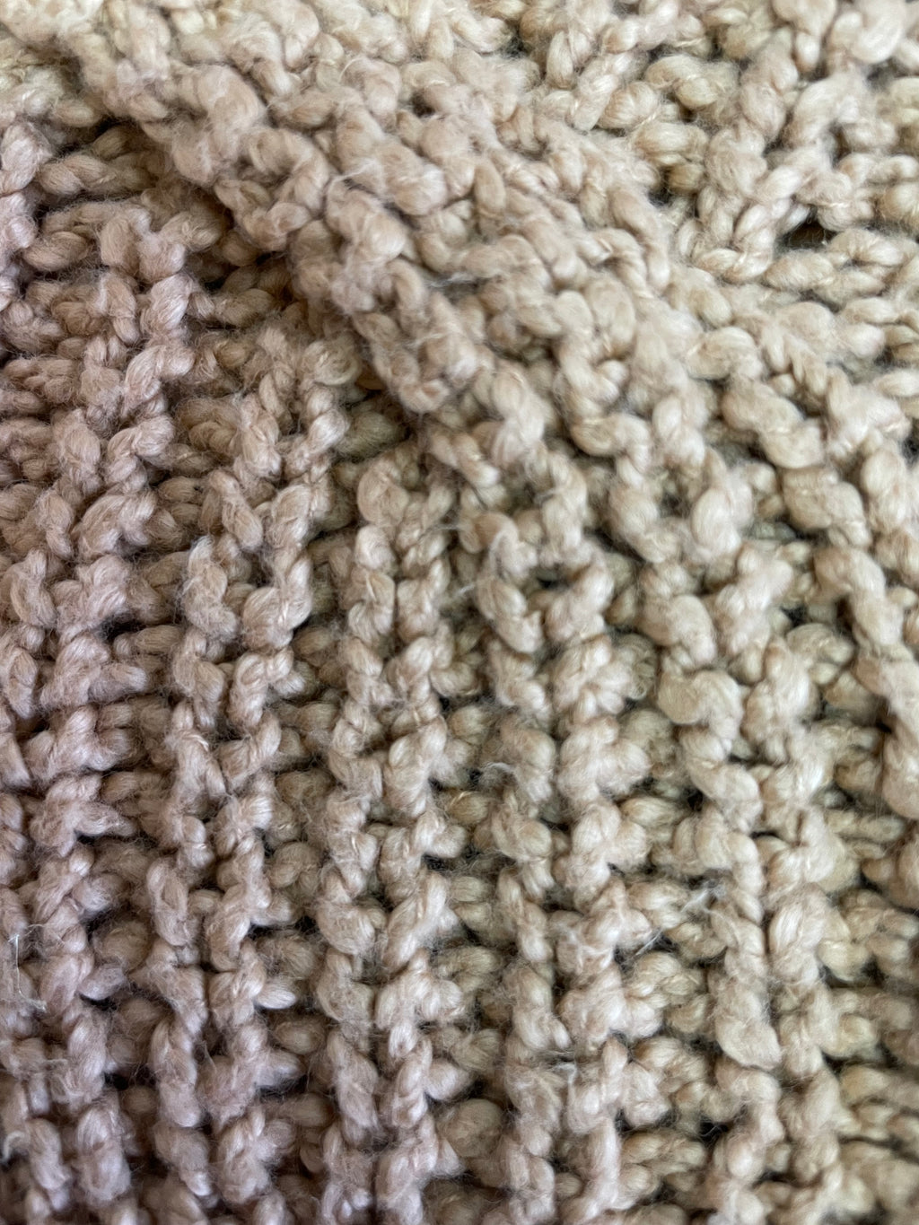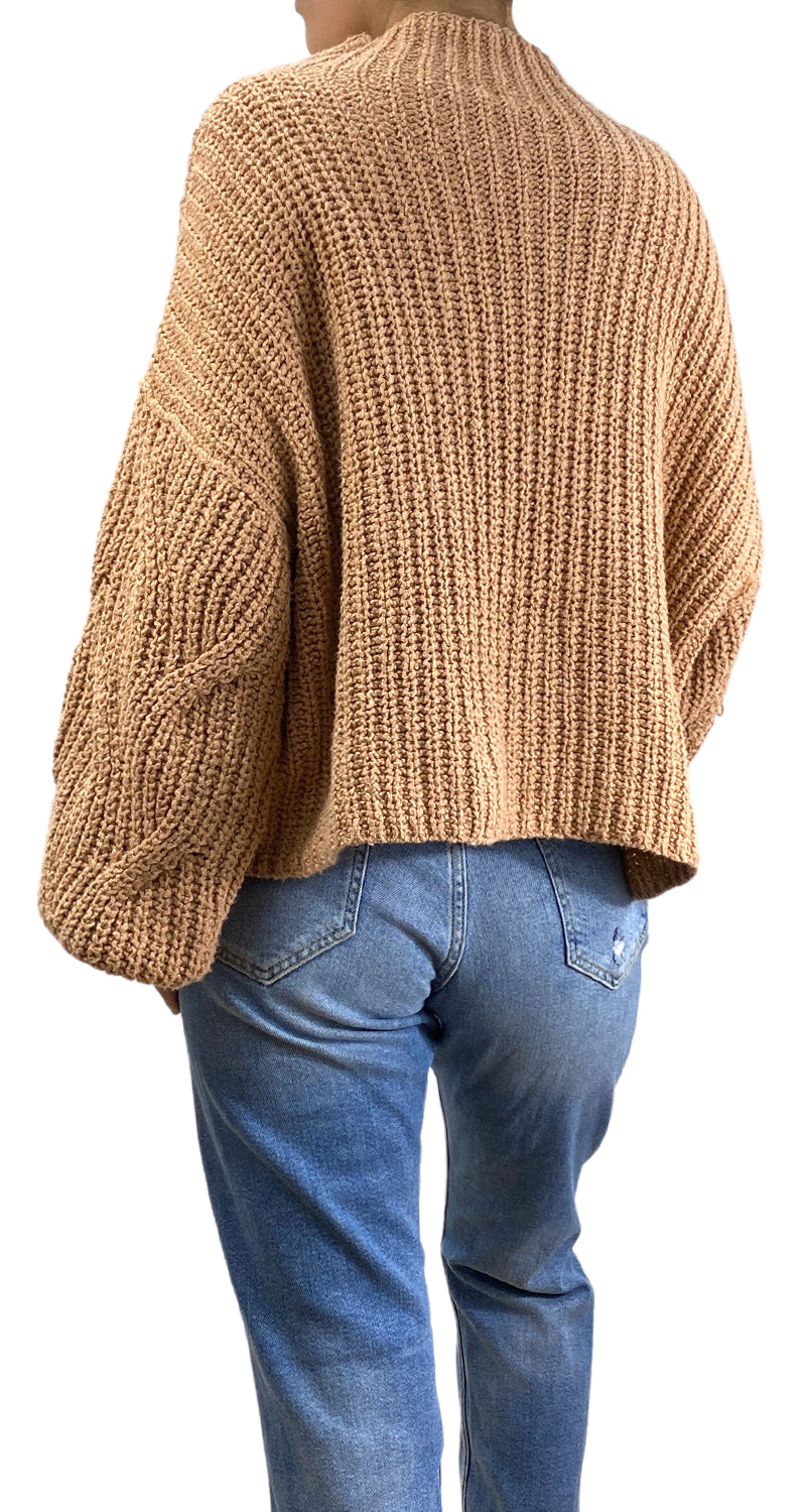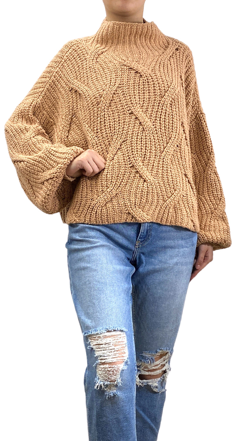 Sweater tejido color Damasco de cuello alto y mangas aglobadas.
