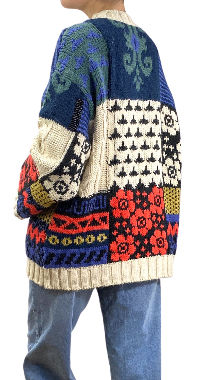 Sweater tejido en Multicolor, detalles con lentejuelas y canutillos en Negro.