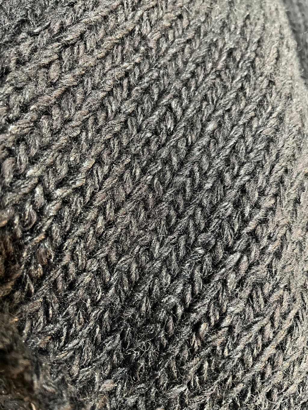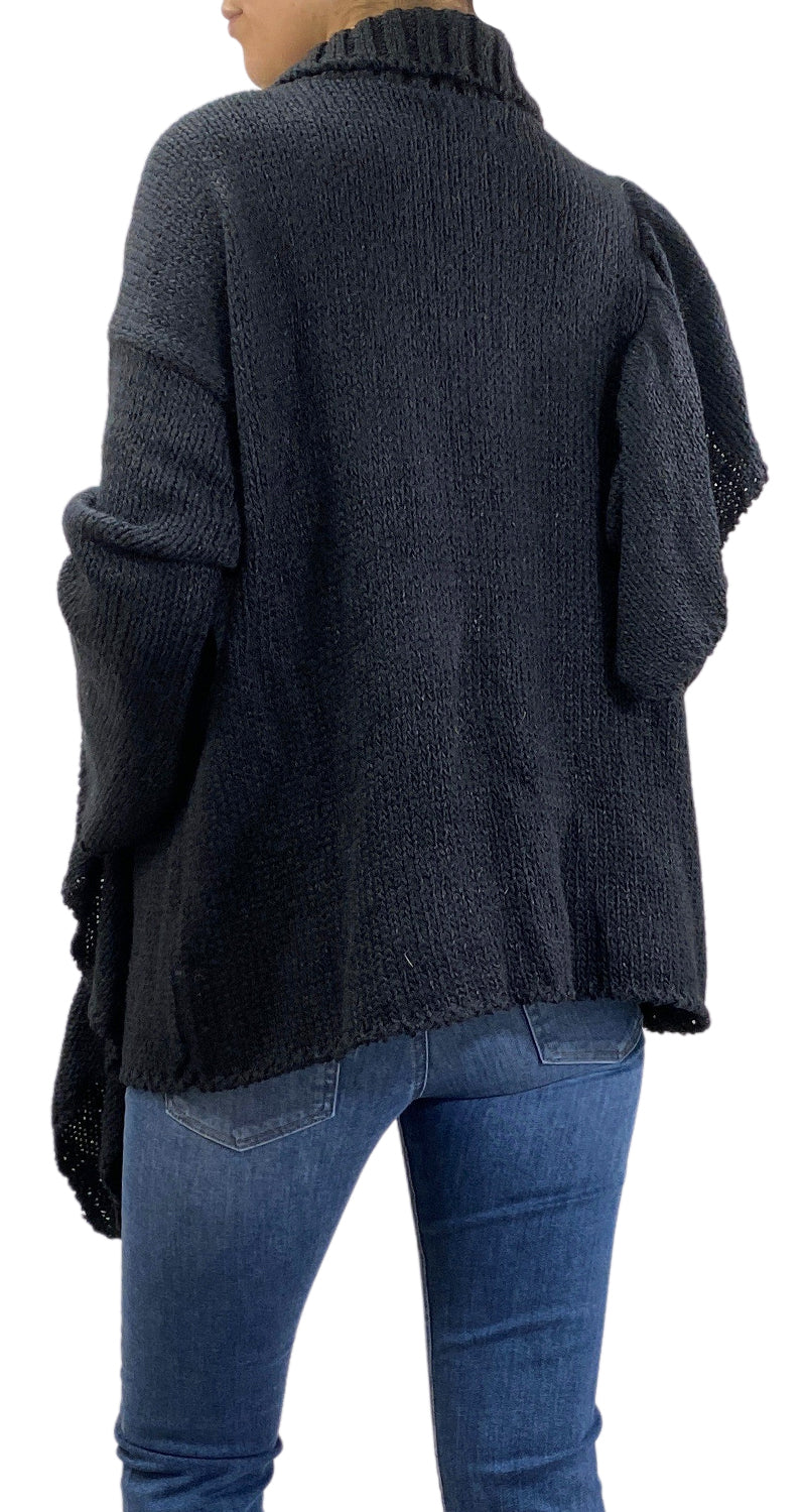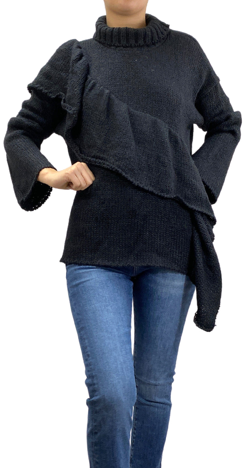 Sweater tejido color Negro de cuello alto y vuelos en delantero. No especifica talla.