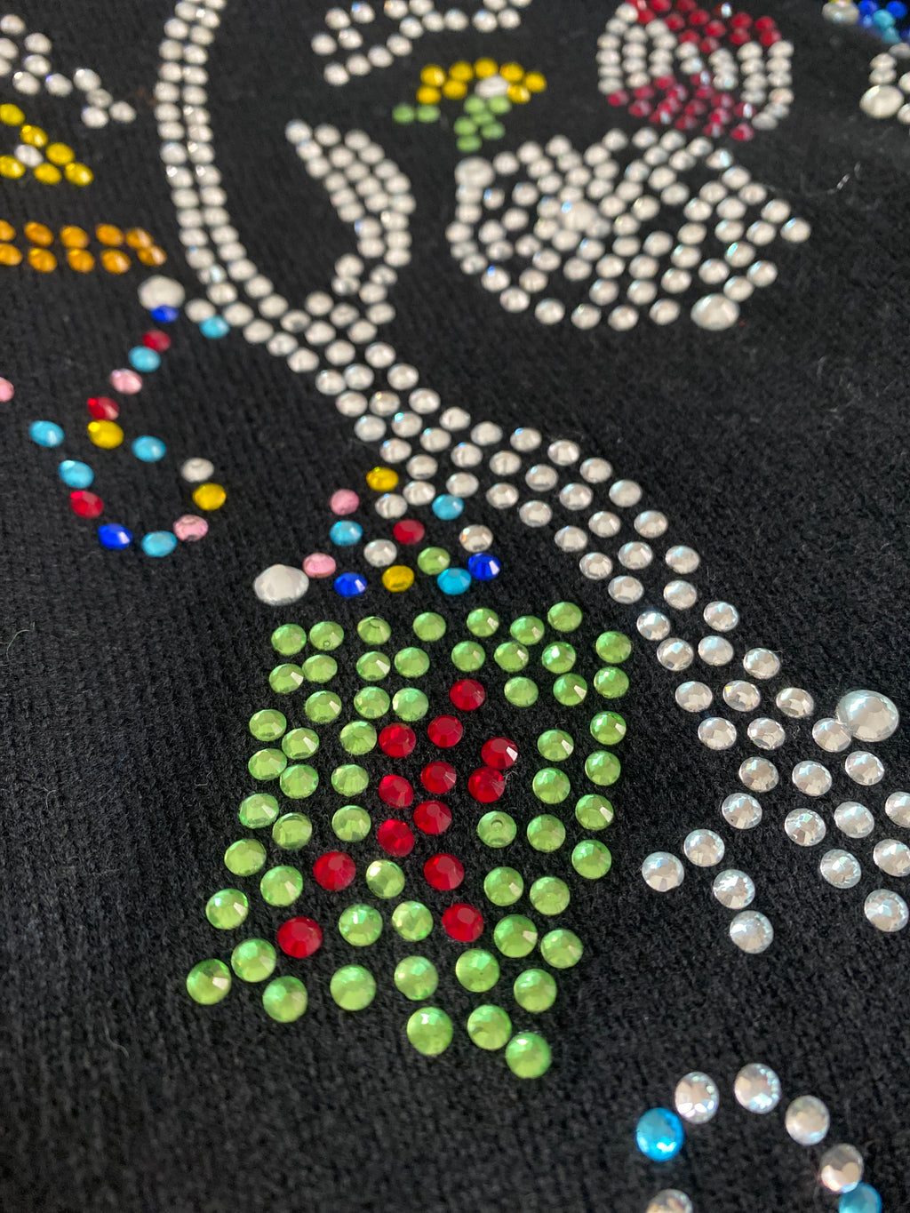 Sweater color Negro cerrado con aplicaciones brillantes.
