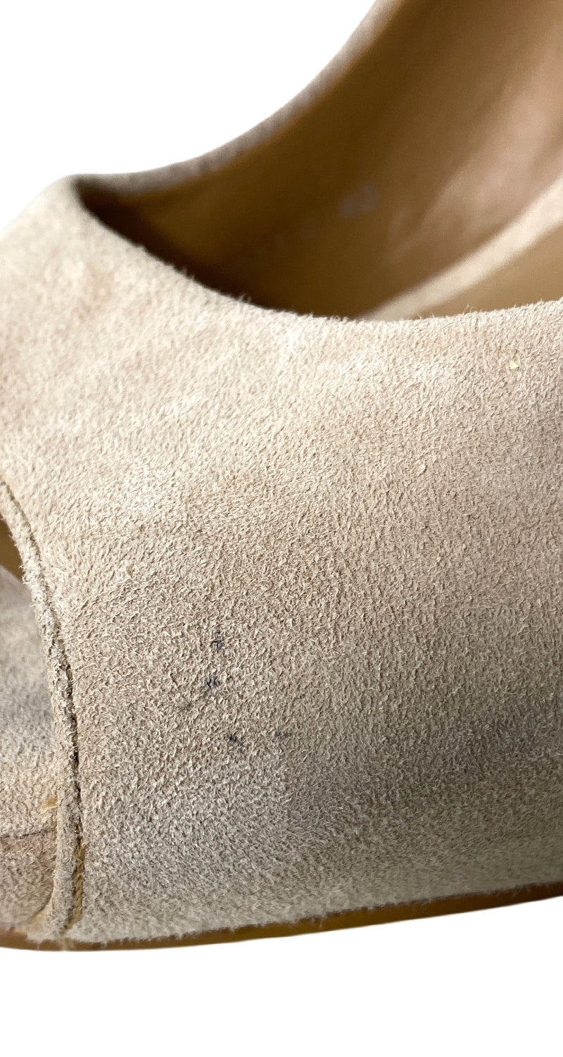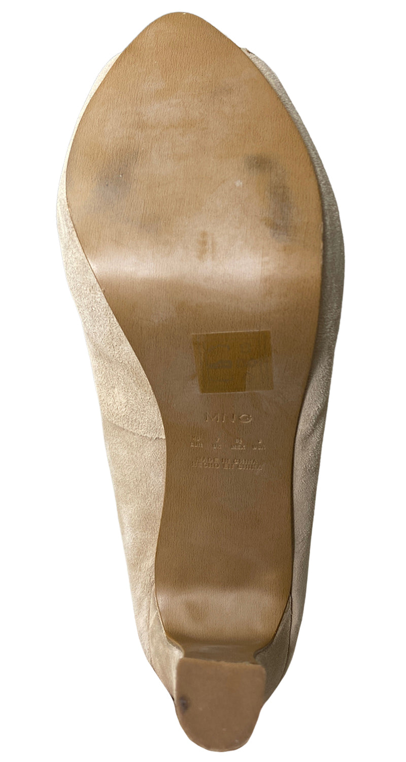 Taco color Beige de Cuero con diseño de punta abierta. Altura taco: 14 cm. Las compras efectuadas de la categoría calzado, no tienen derecho a cambios ni devoluciones.