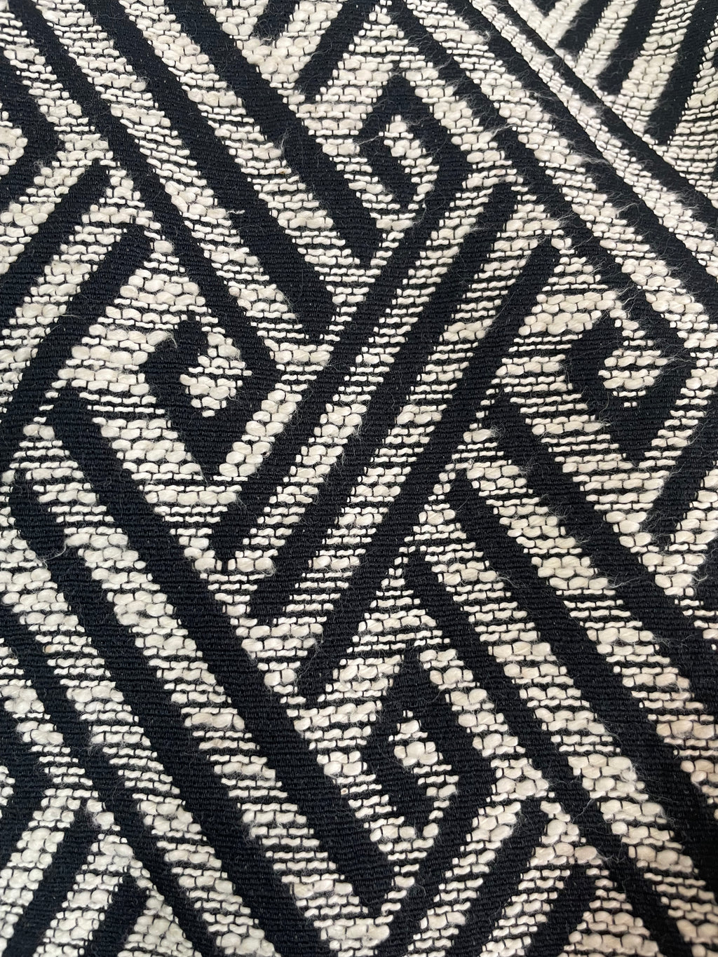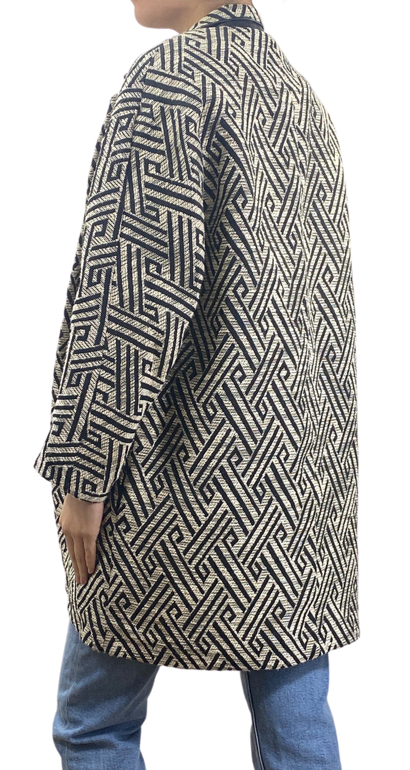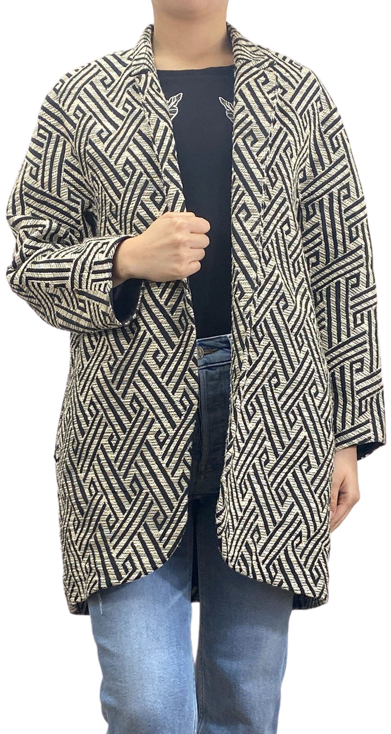 Tapado tejido con diseño en Blanco y Negro, solapas y bolsillos.