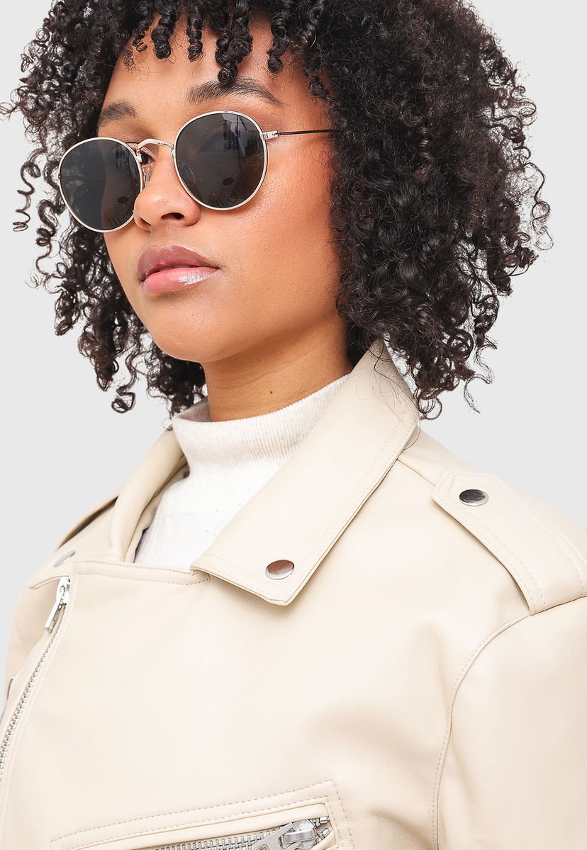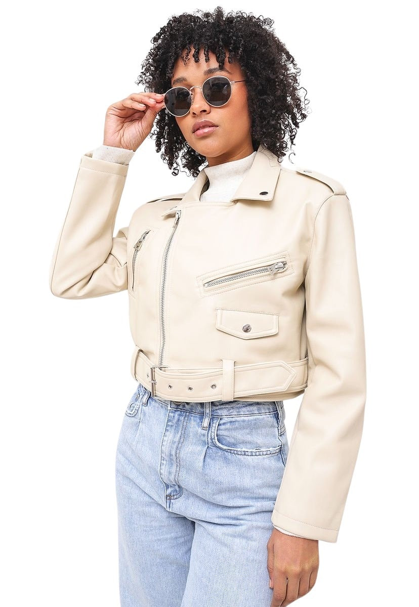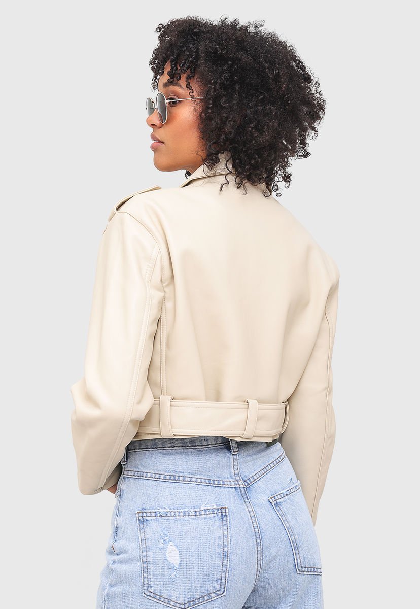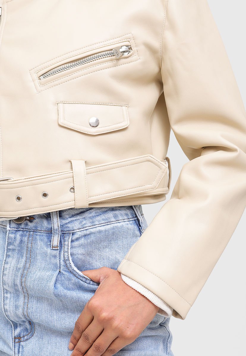 Chaqueta Topshop Faux Leather Cropped Biker Jacket Beige - Calce Regular