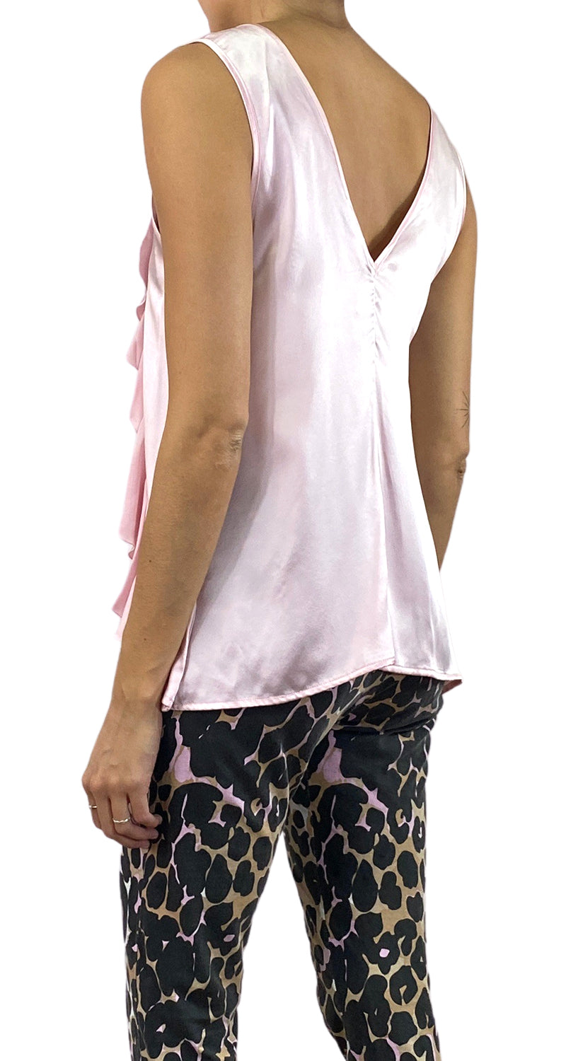 Top de Seda color Rosado, con vuelos en delantero y escote en V. Talla 40/1 de la marca.