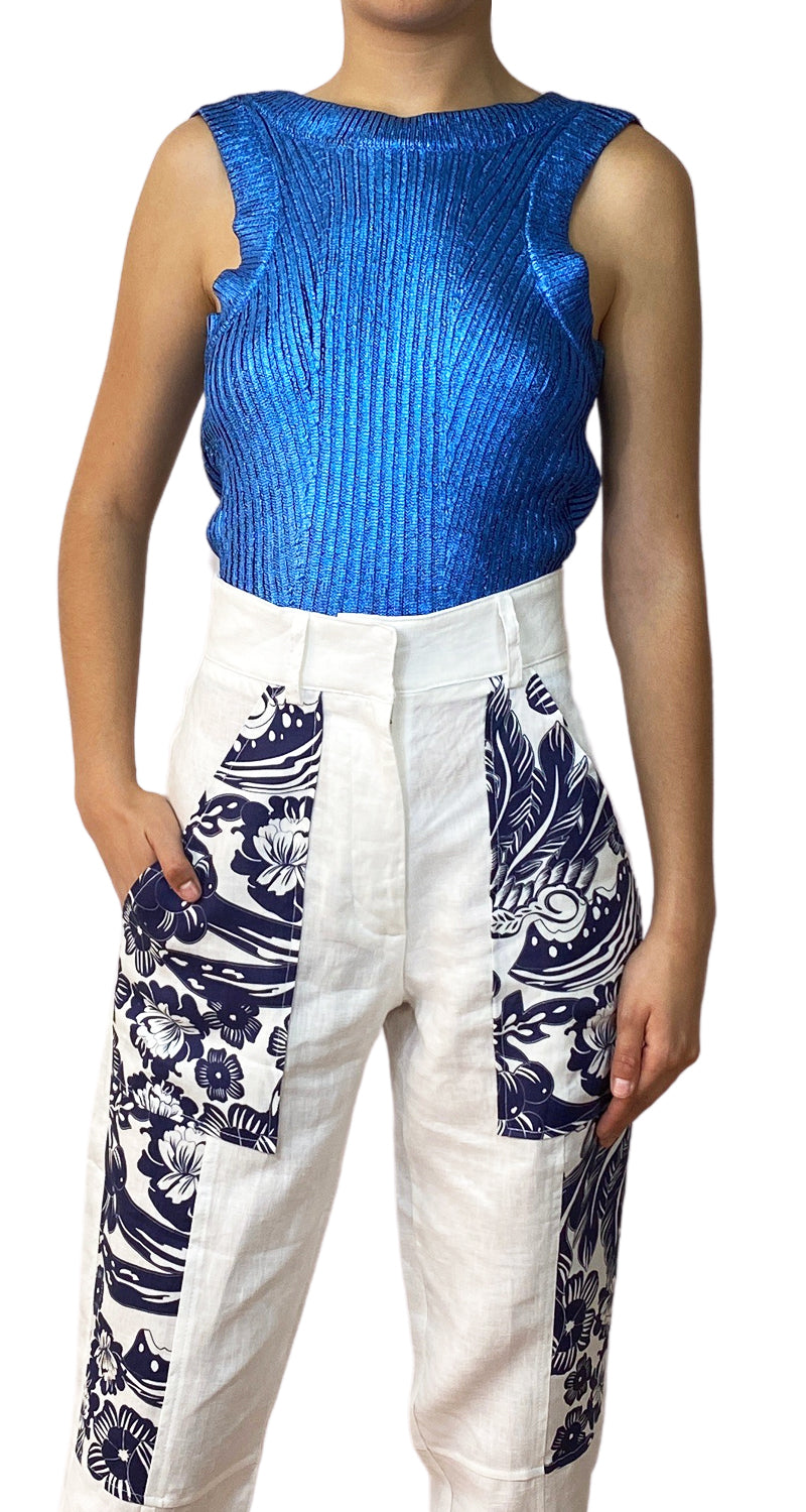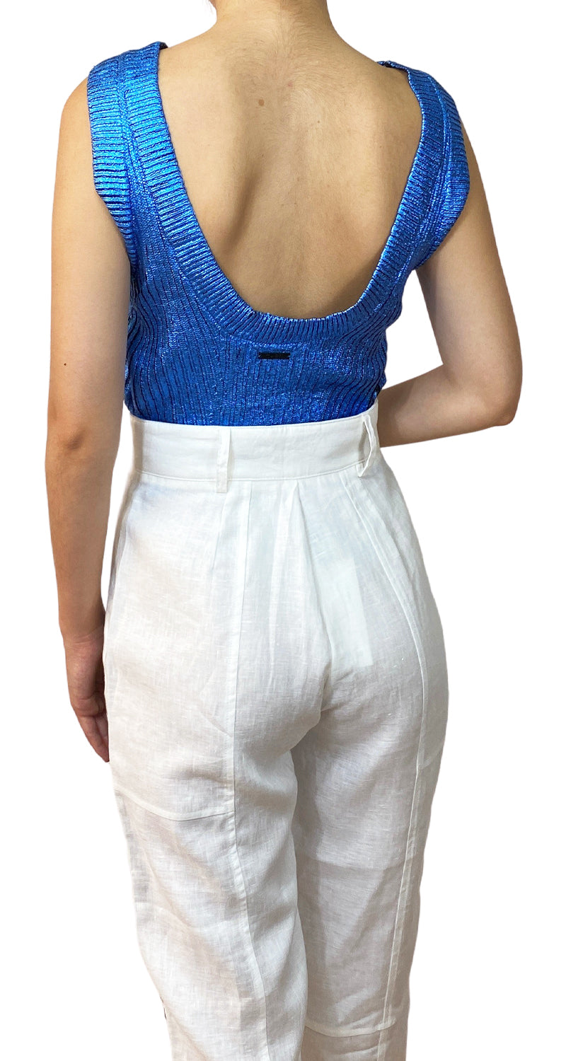 Top tejido color Azul Eléctrico con escote en espalda. Talla 1 de la marca.