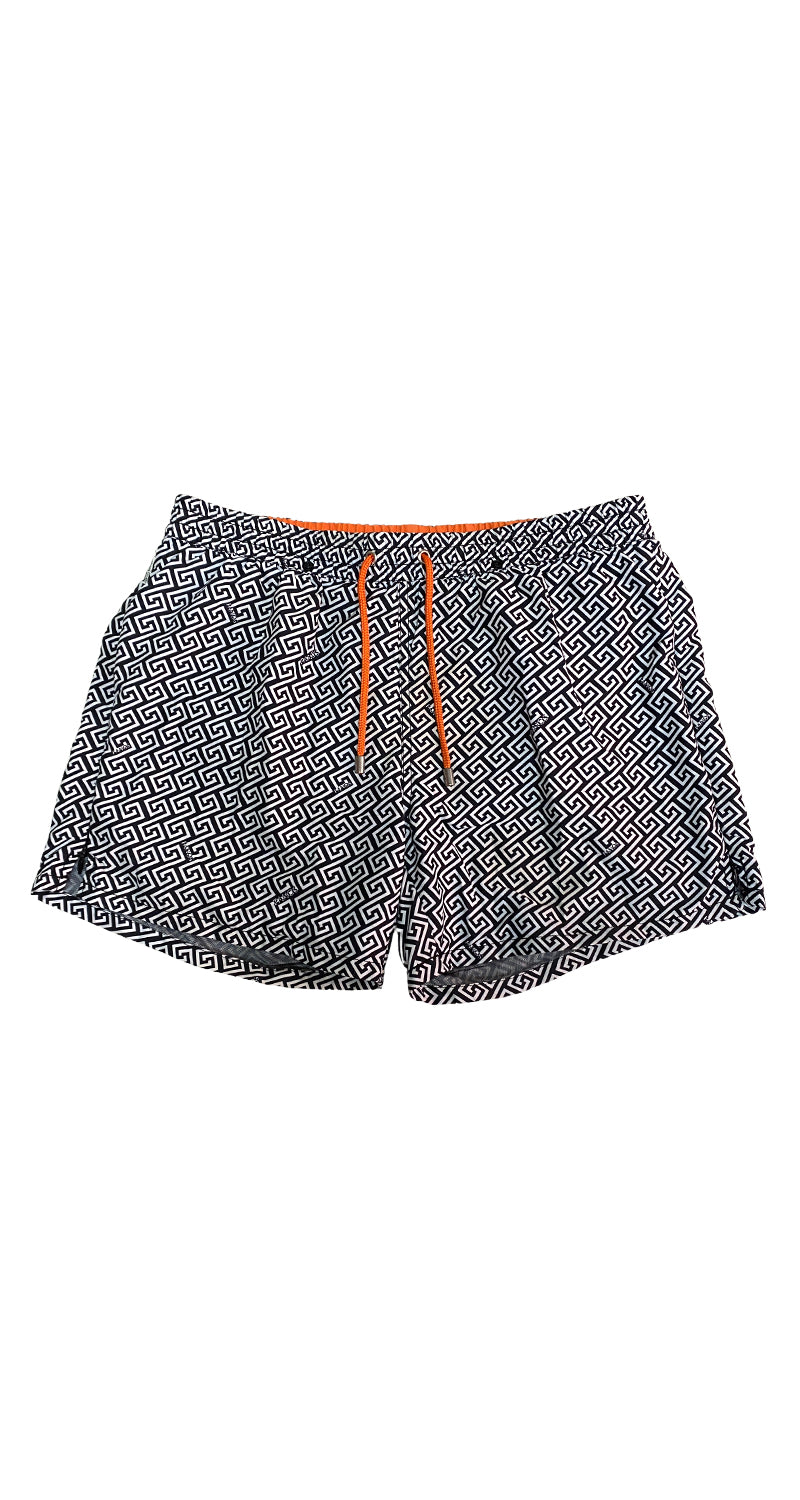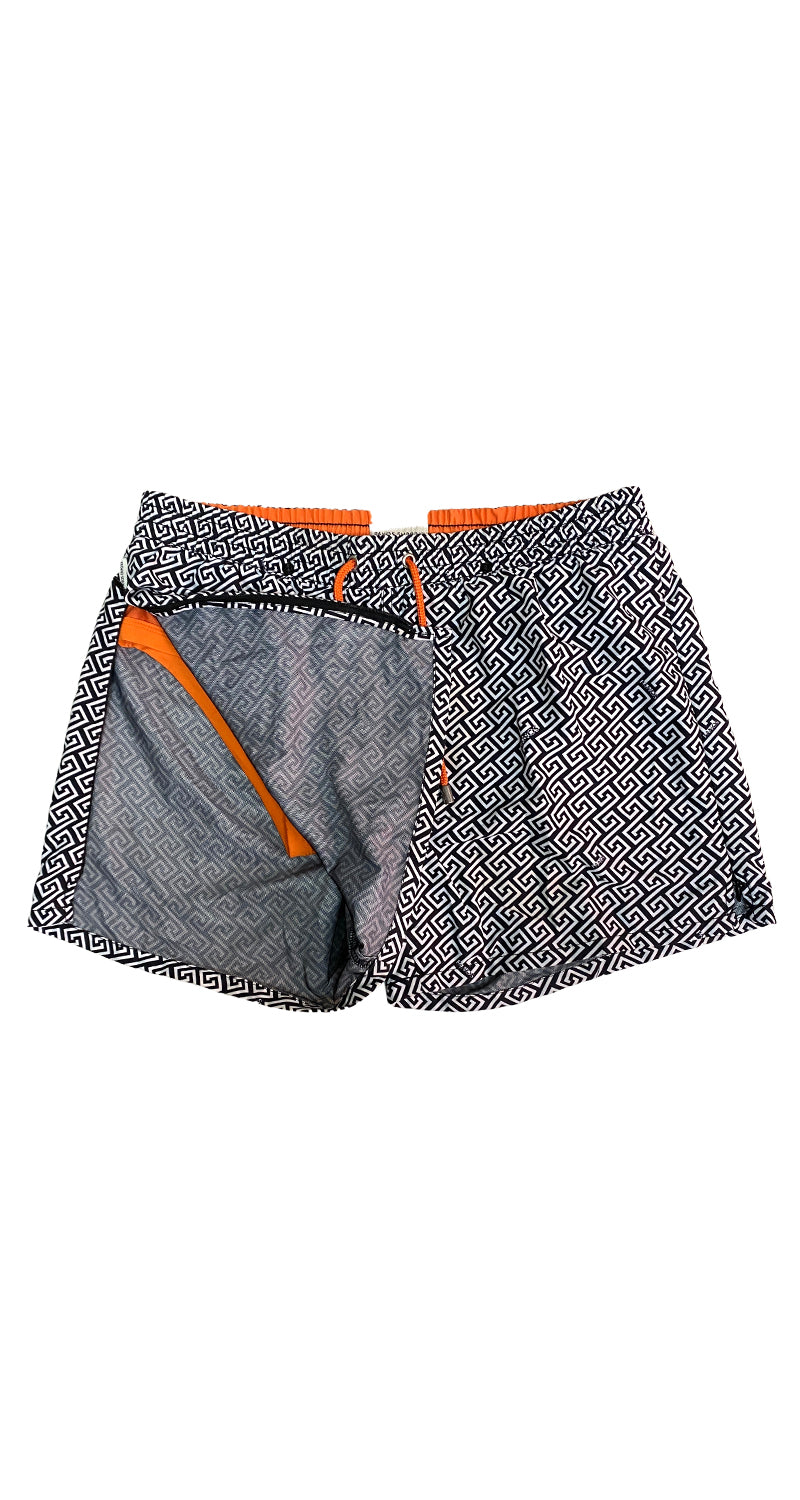 Traje de Baño en color Blanco y Negro, con pretina elasticada y cordón Naranja, cierre invisible en laterales.