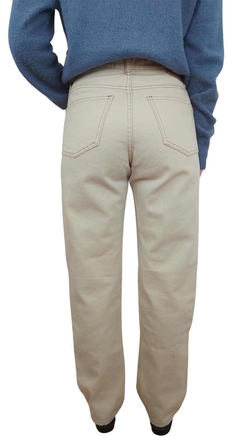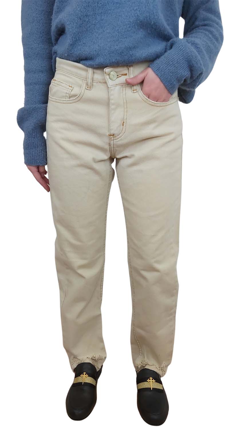Pantalón de tiro alto color Beige con detalles destroyed en ruedo. Talla 0 de la marca.