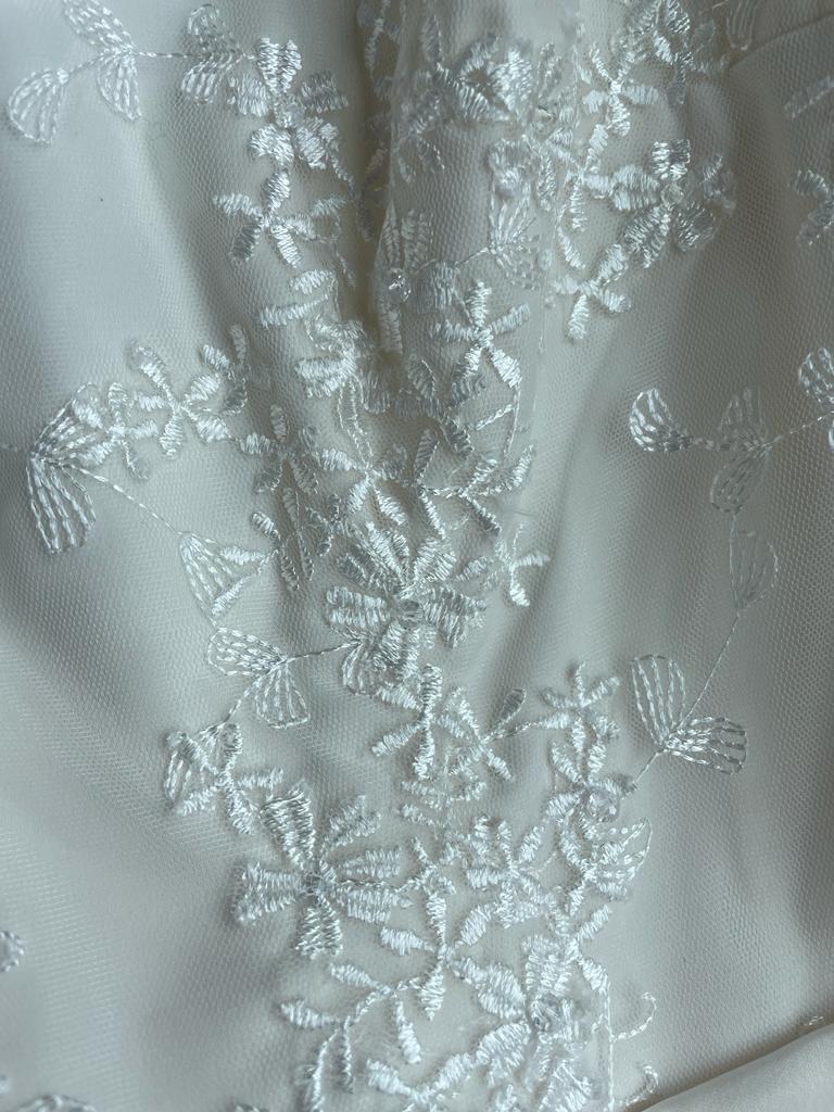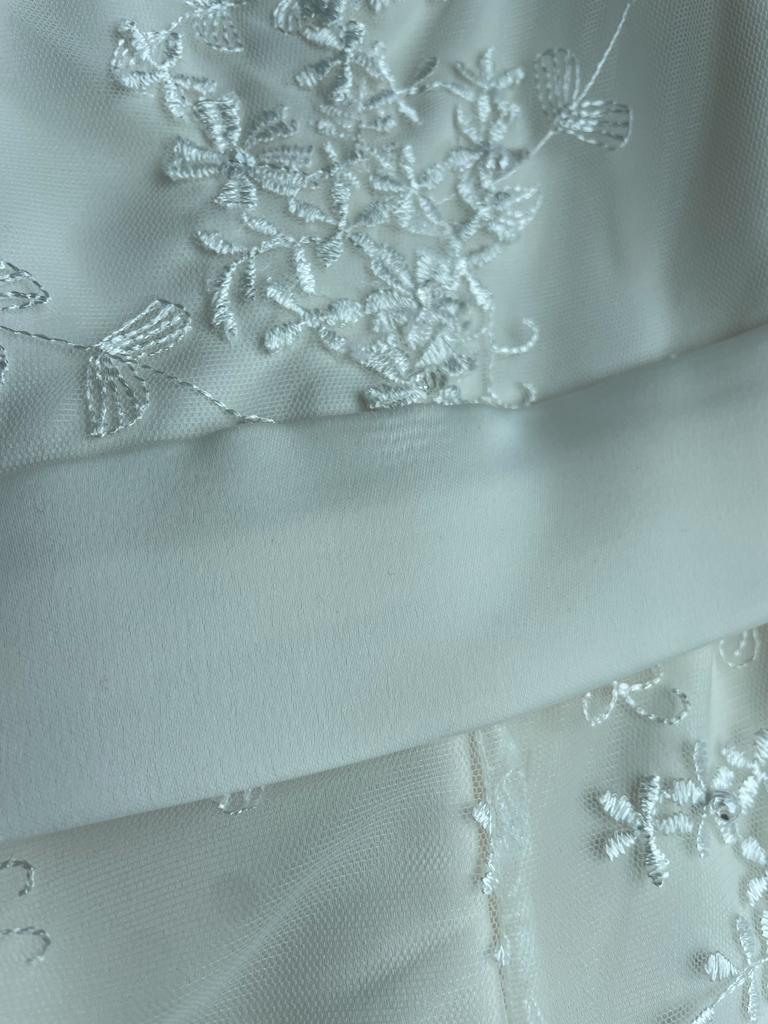 Producto de la diseñadora Carolina Valenzuela. Incluye velo. No especifica talla. Altura de modelo 1,68