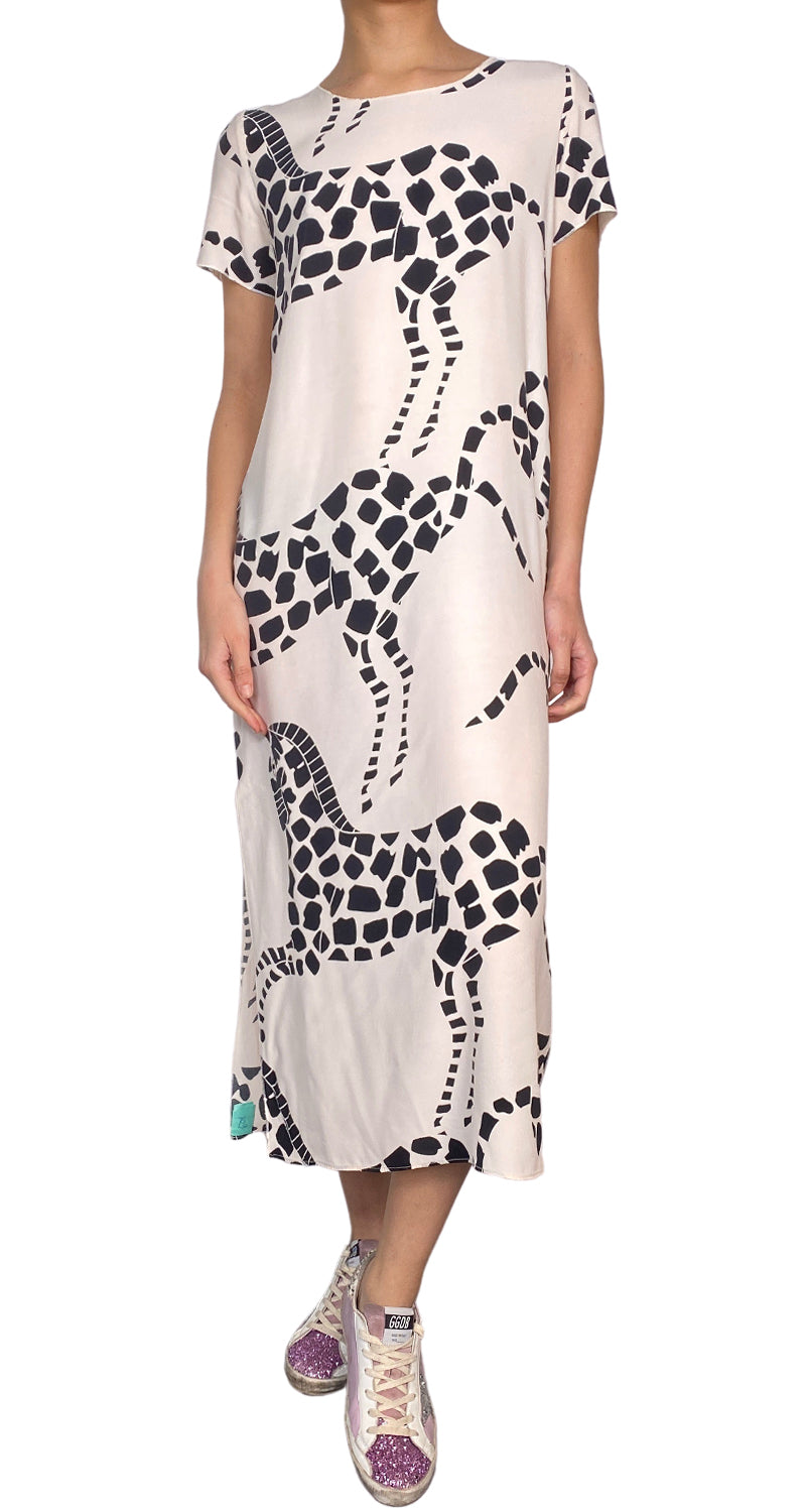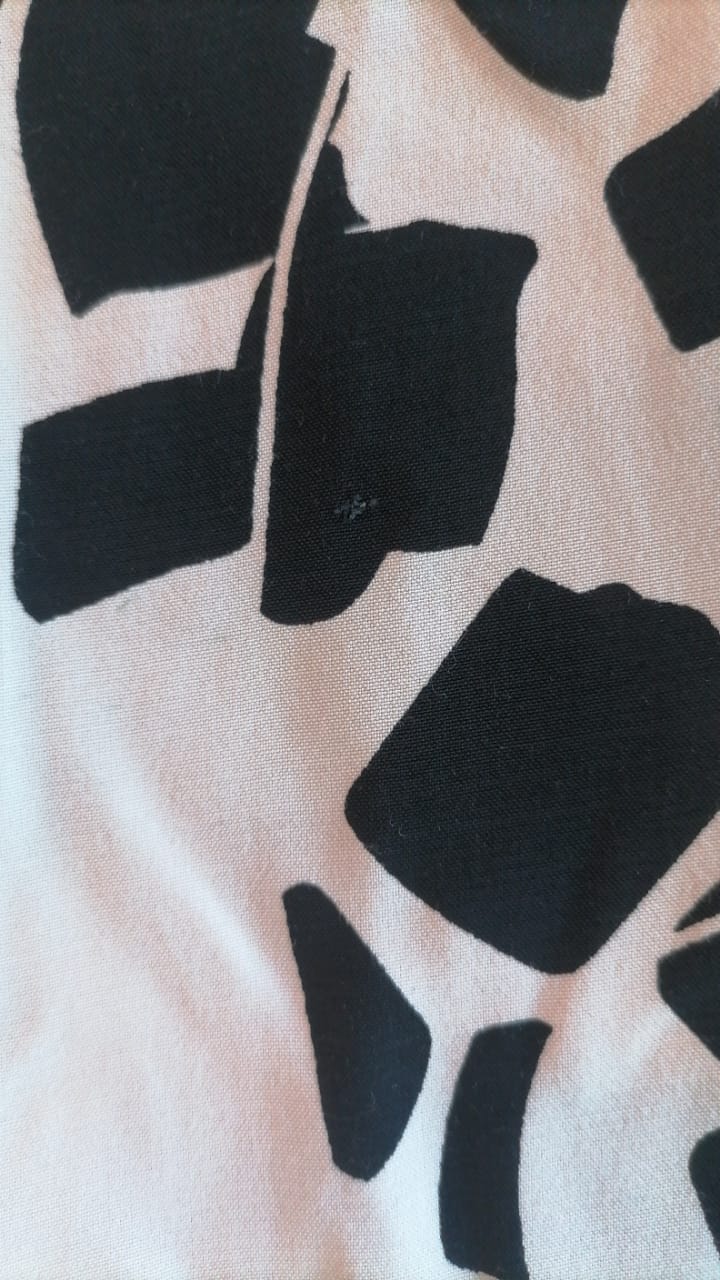 Altura de modelo 1,68. Presenta pequeñas manchas e hilo corrido. No presenta etiqueta de la marca. No especifica talla.