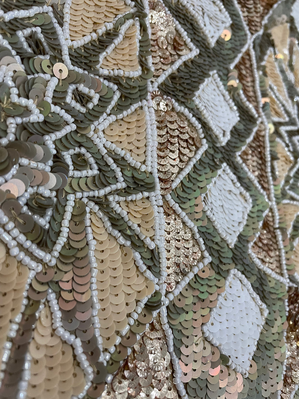 Vestido Mini de lentejuelas Multicolor y canutillos, tirantes ajustables y cierre en lateral. Altura de modelo 1,68