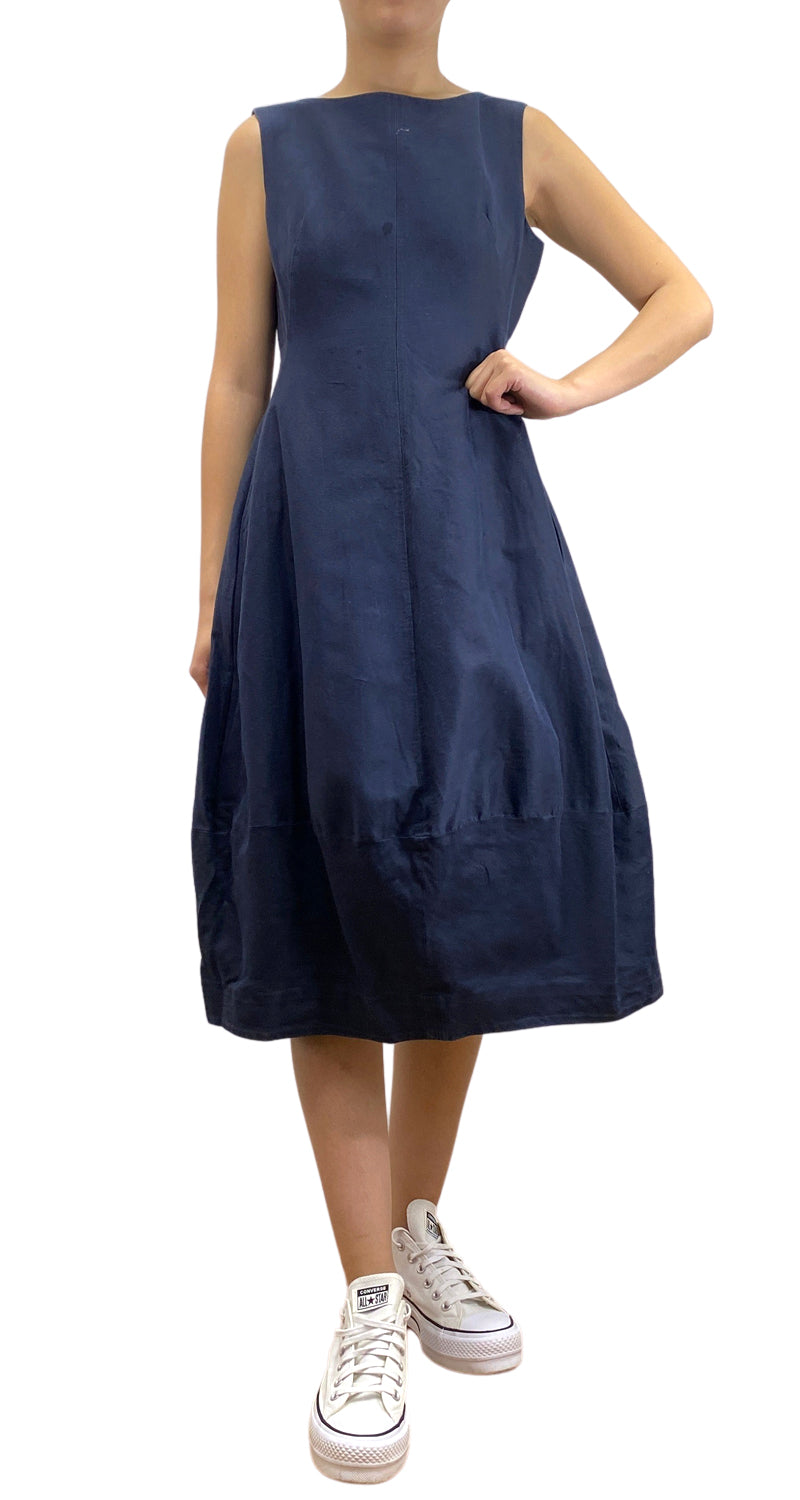 Vestido Midi color Azul con cuello redondo y cierre en espalda. Talla 38 de la marca. Altura modelo 1.68.