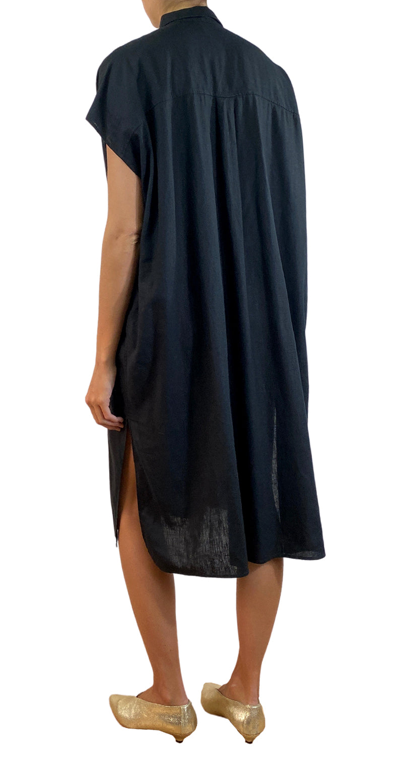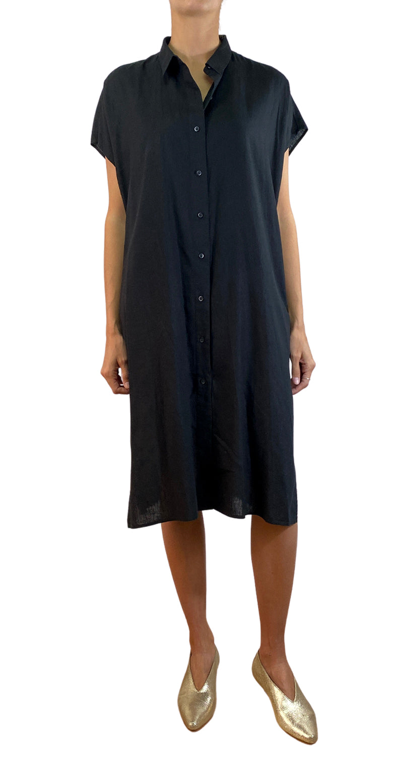 Vestido Midi en color Negro de botones en delantero, bolsillo y abertura en laterales. Altura de modelo 1,71