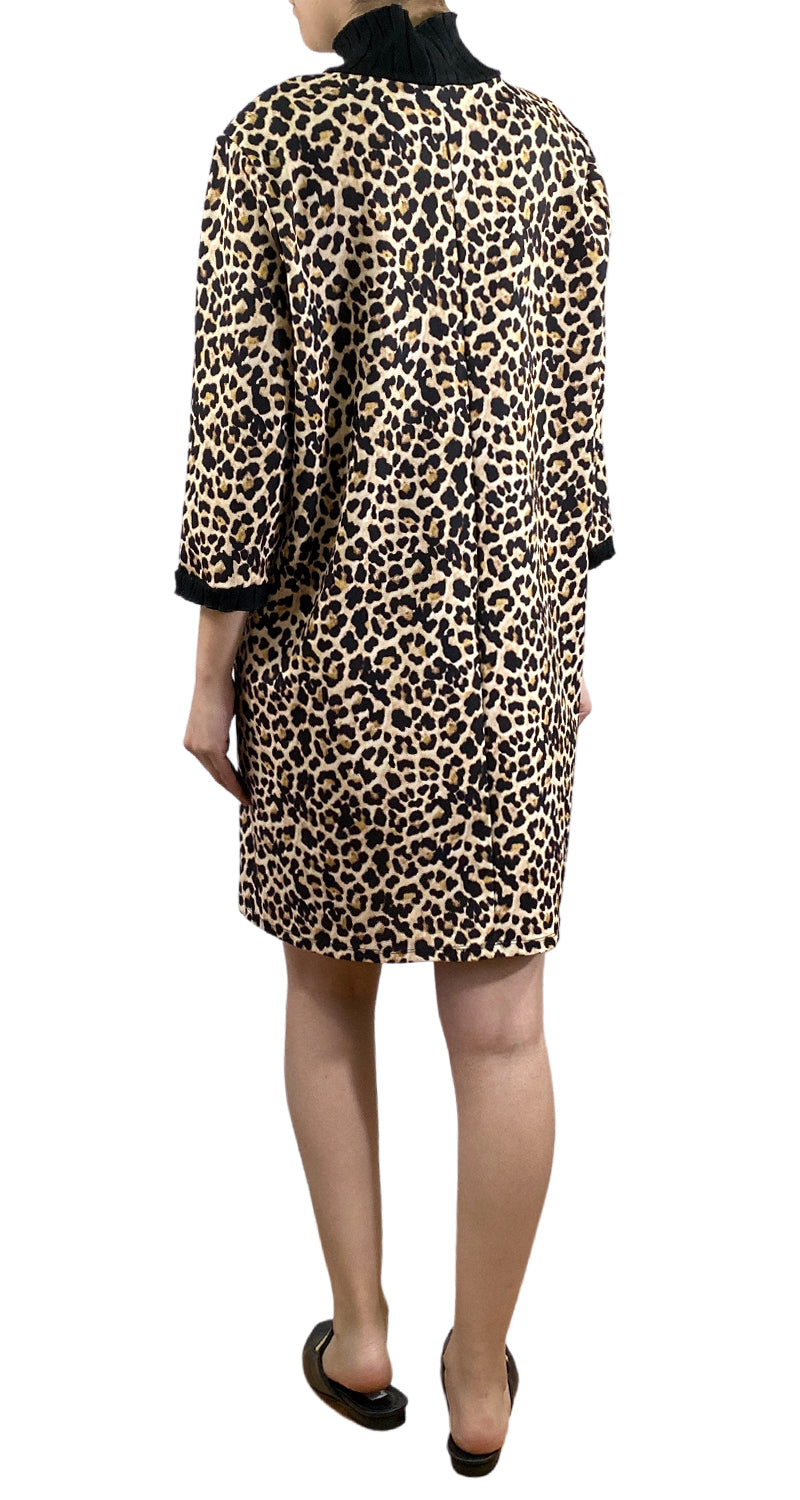 Vestido Mini Animal Print con cuello y ruedo de mangas tejidas. Altura modelo 1.68.