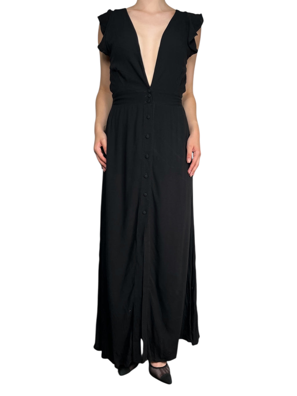 Vestido Negro Largo Botones