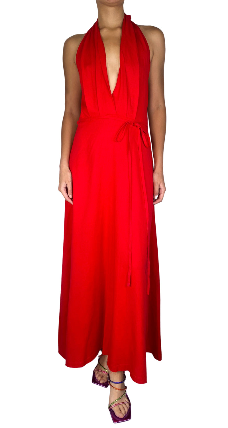 Vestido con espalda descubierta y es escote en V. Altura de la modelo 1,68.