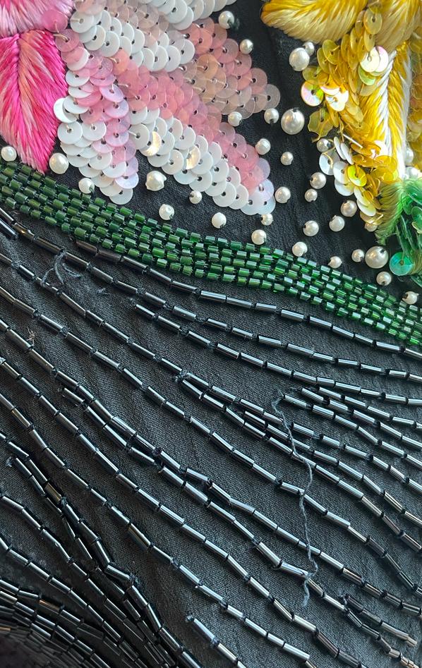 Altura de modelo 1,68. Talla 8 de la marca. Presenta detelle en aplicaciones.