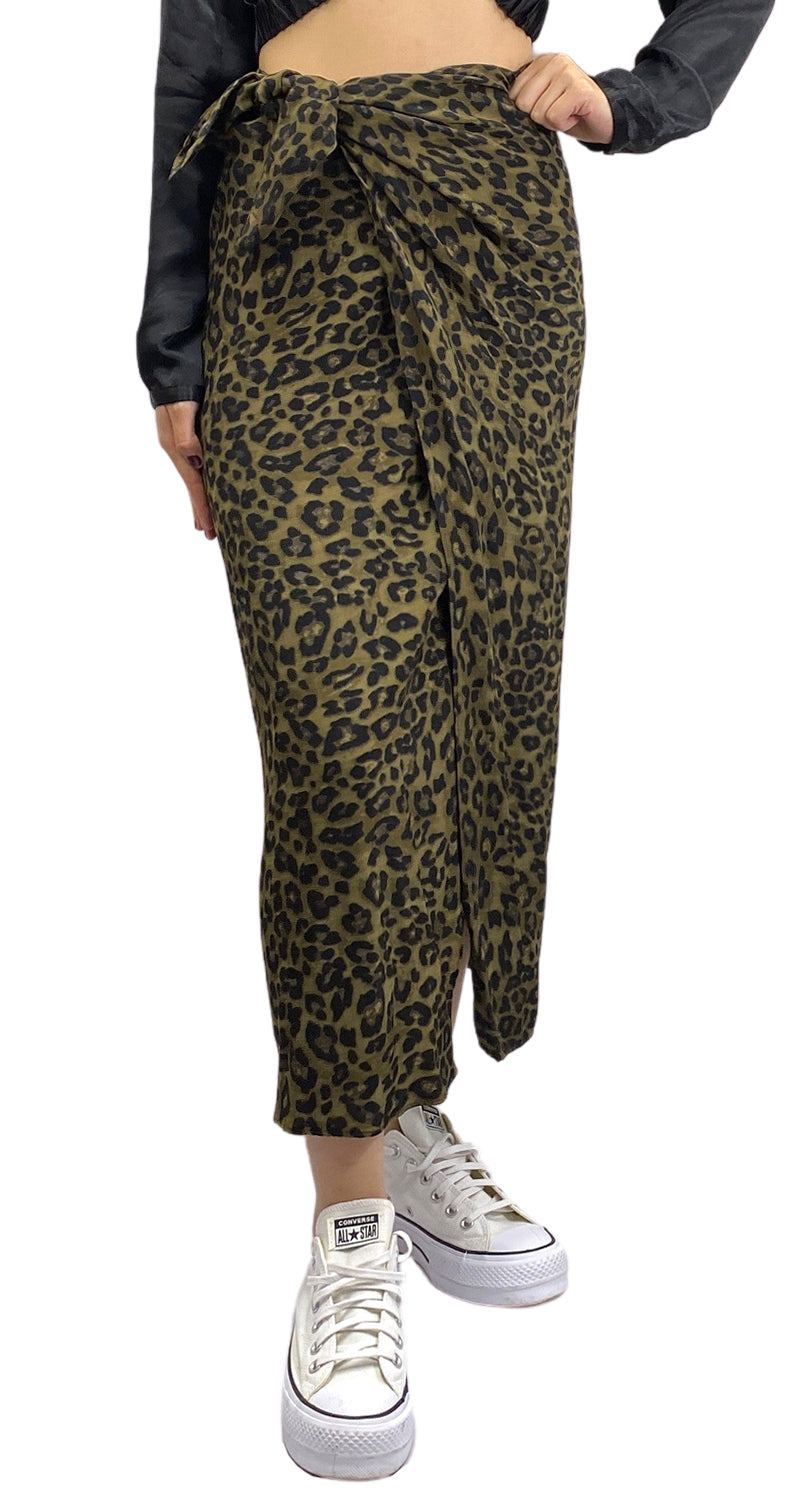 Falda con estampado Animal Print en color Verde, con lazo lateral. Altura de modelo 1,68