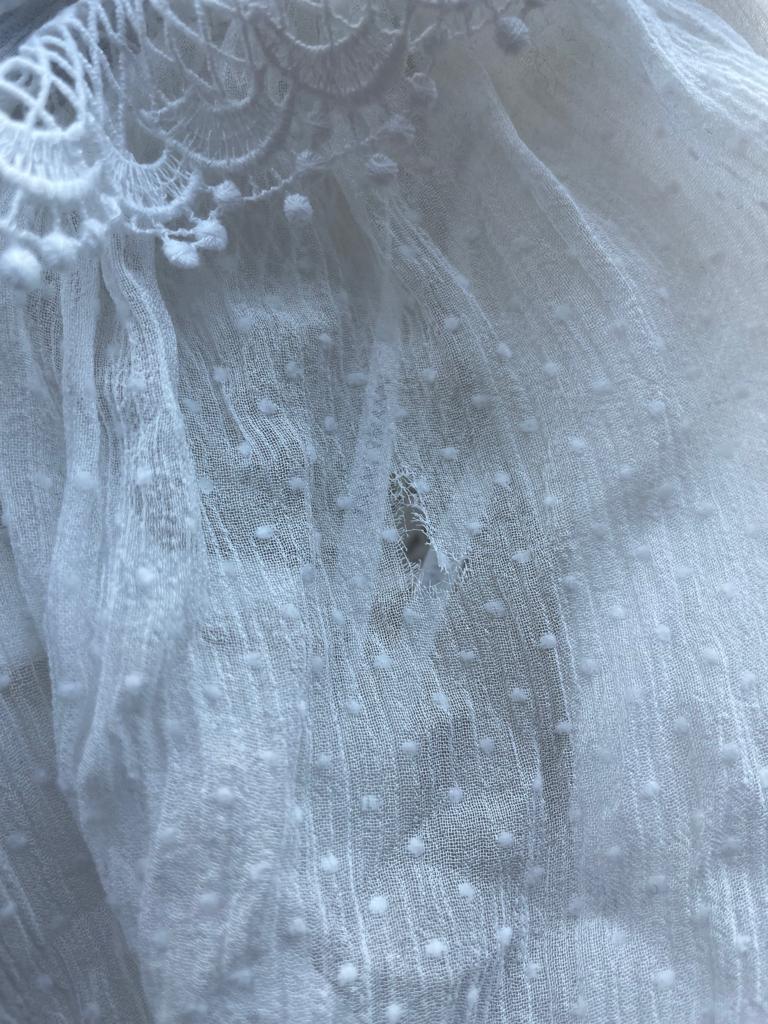 Presenta pequeño agujero en manga, esta nuevo con etiqueta. Altura de la modelo 1,68. Talla 3 de la marca.