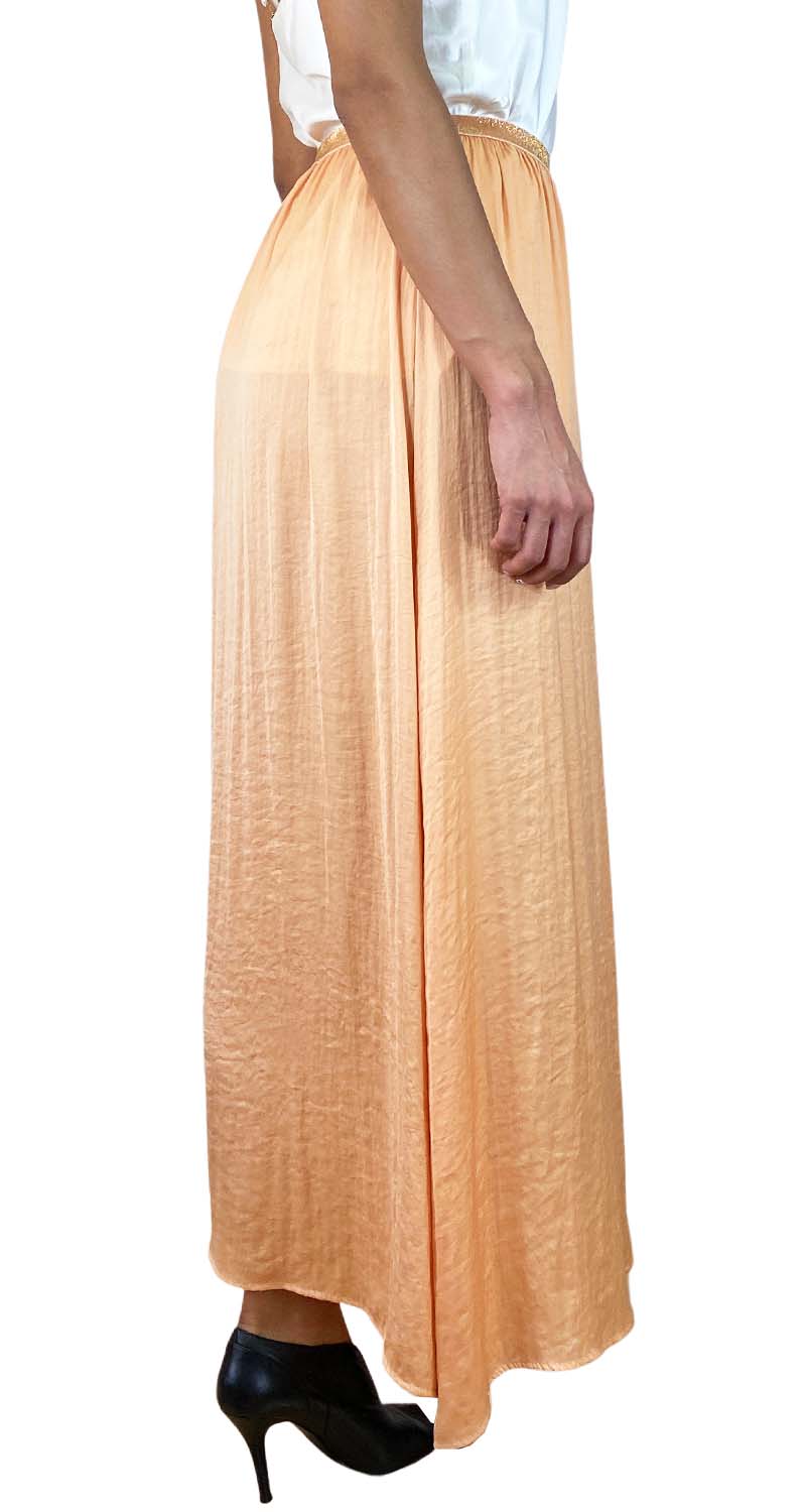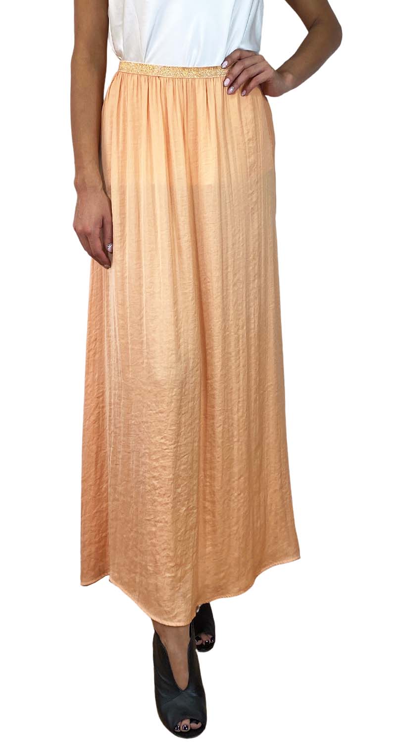 Falda Rosada maxi con pretina elasticada brillante. Desapercibidos signos de uso.
