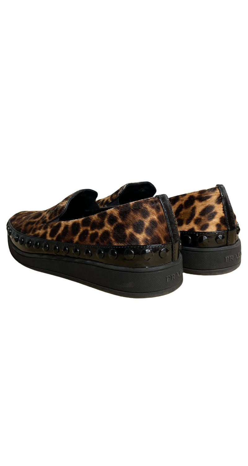 Mocasines con diseño de Leopardo y detalles de tachas Negras. Medida de taco: 3cm.