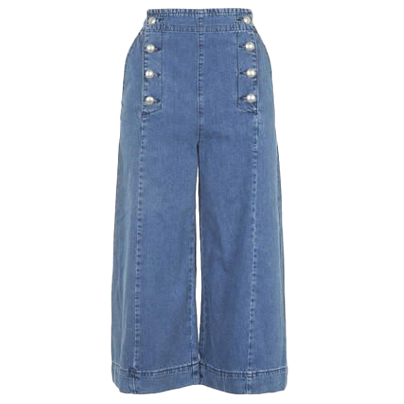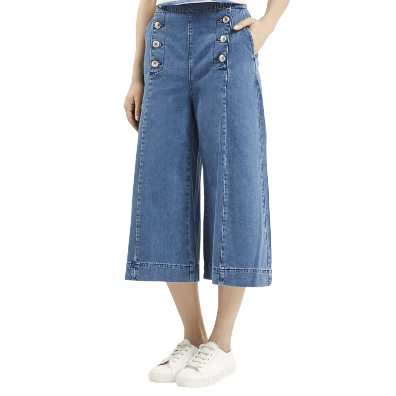 Jeans deslavado con  botones Plateados en delantero, Talla de la marca W28.