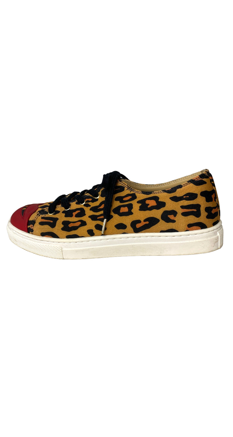 Zapatillas con diseño Animal Print, cordones Negros y detalle en Punta color Rojo. Presenta leves signos de uso. Las compras efectuadas de la categoría calzado, no tienen derecho a cambios ni devoluciones.