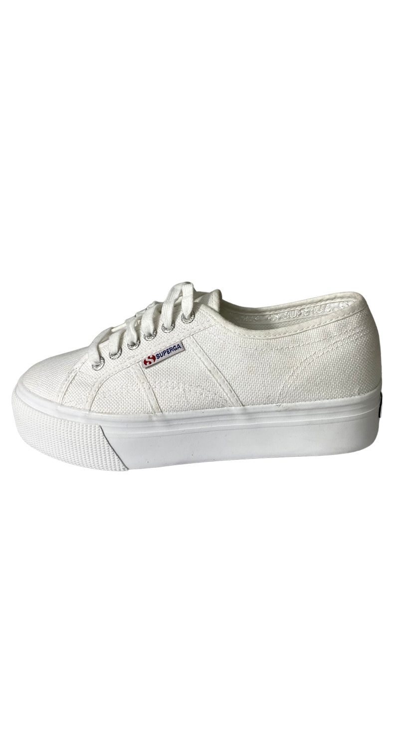 Zapatillas color Blanca con suela de 4 cm. Las compras efectuadas de la categoría calzado, no tienen derecho a cambios ni devoluciones.