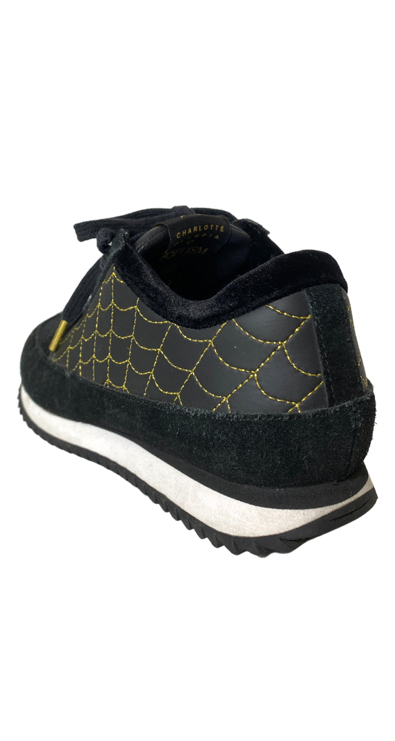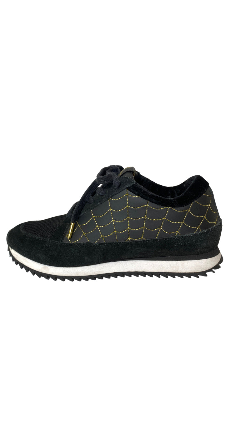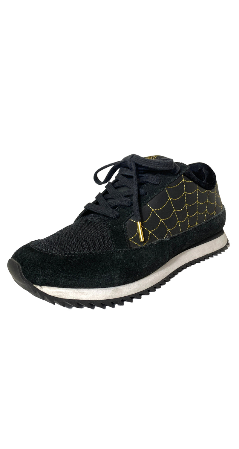 Zapatillas color Negro con estampado Dorado en laterales, suela Blanca. Las compras efectuadas de la categoría calzado, no tienen derecho a cambios ni devoluciones.