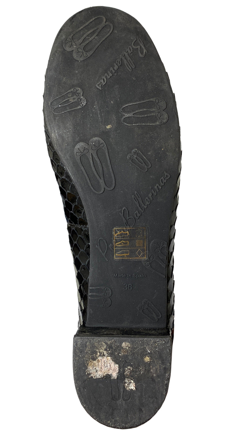 Zapatos en color Negro con textura de escamas, lazo en punta, tacón de 3 cm. Las compras efectuadas de la categoría calzado, no tienen derecho a cambios ni devoluciones.